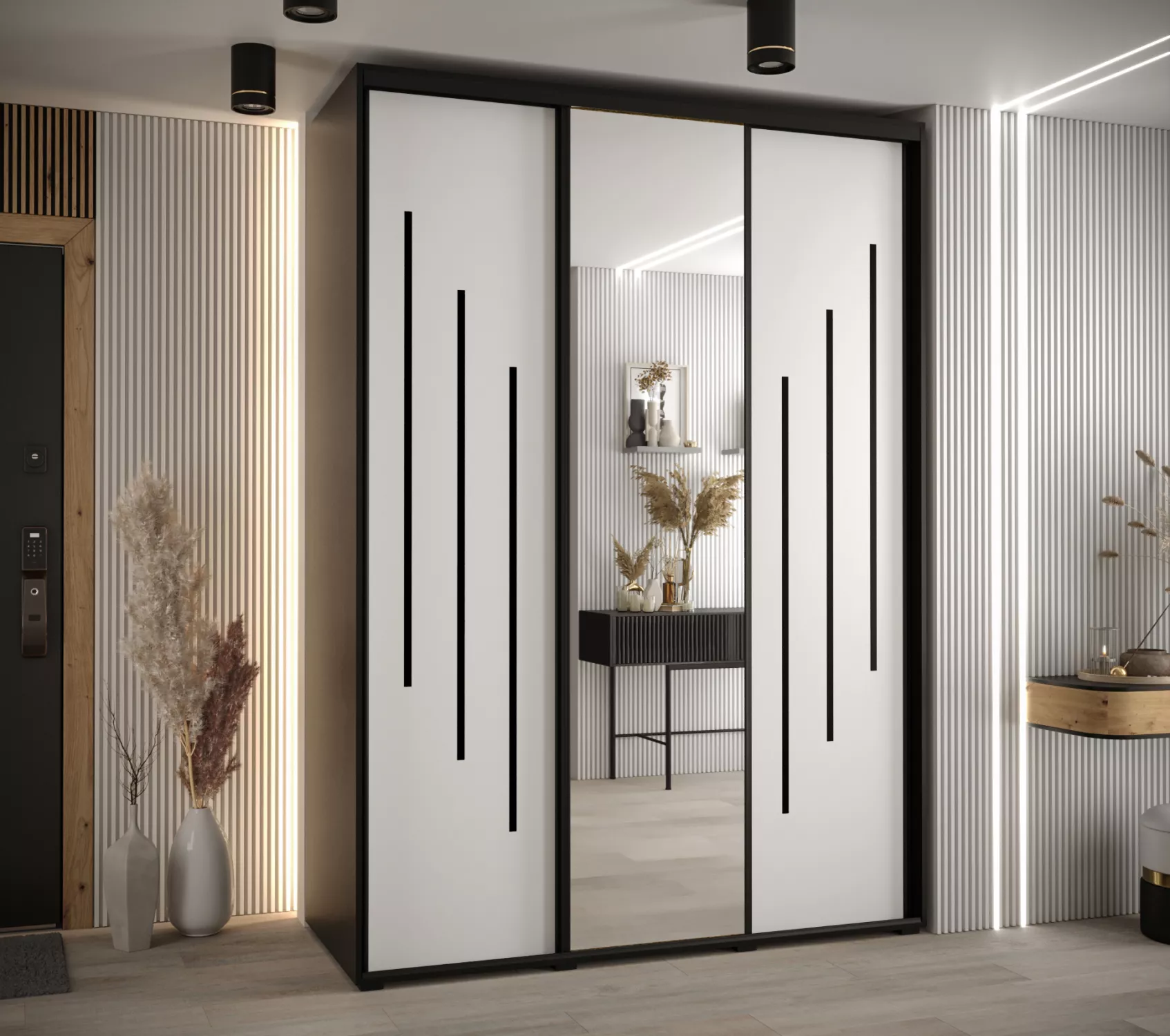 Šatní skříň YVONA 9 - 180/60 cm, černá / bílá / černá
