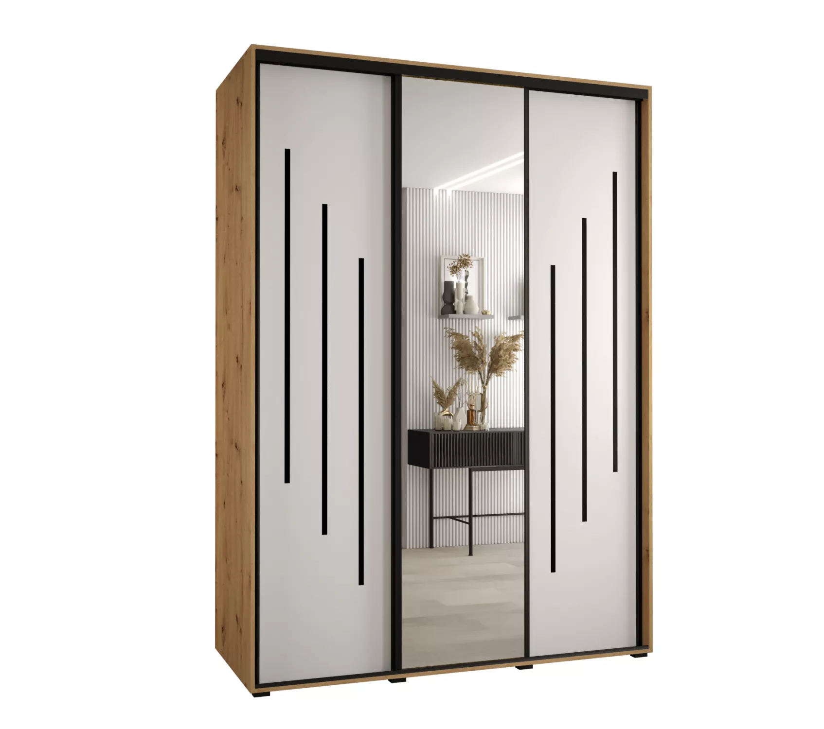 Šatní skříň YVONA 9 - 180/60 cm, dub artisan / bílá / černá