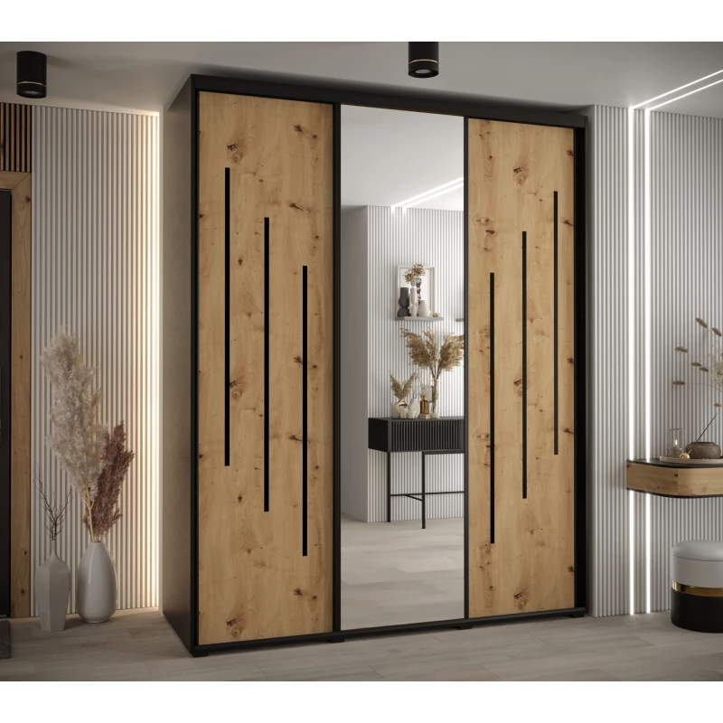Šatní skříň YVONA 9 - 200/60 cm, černá / dub artisan / černá