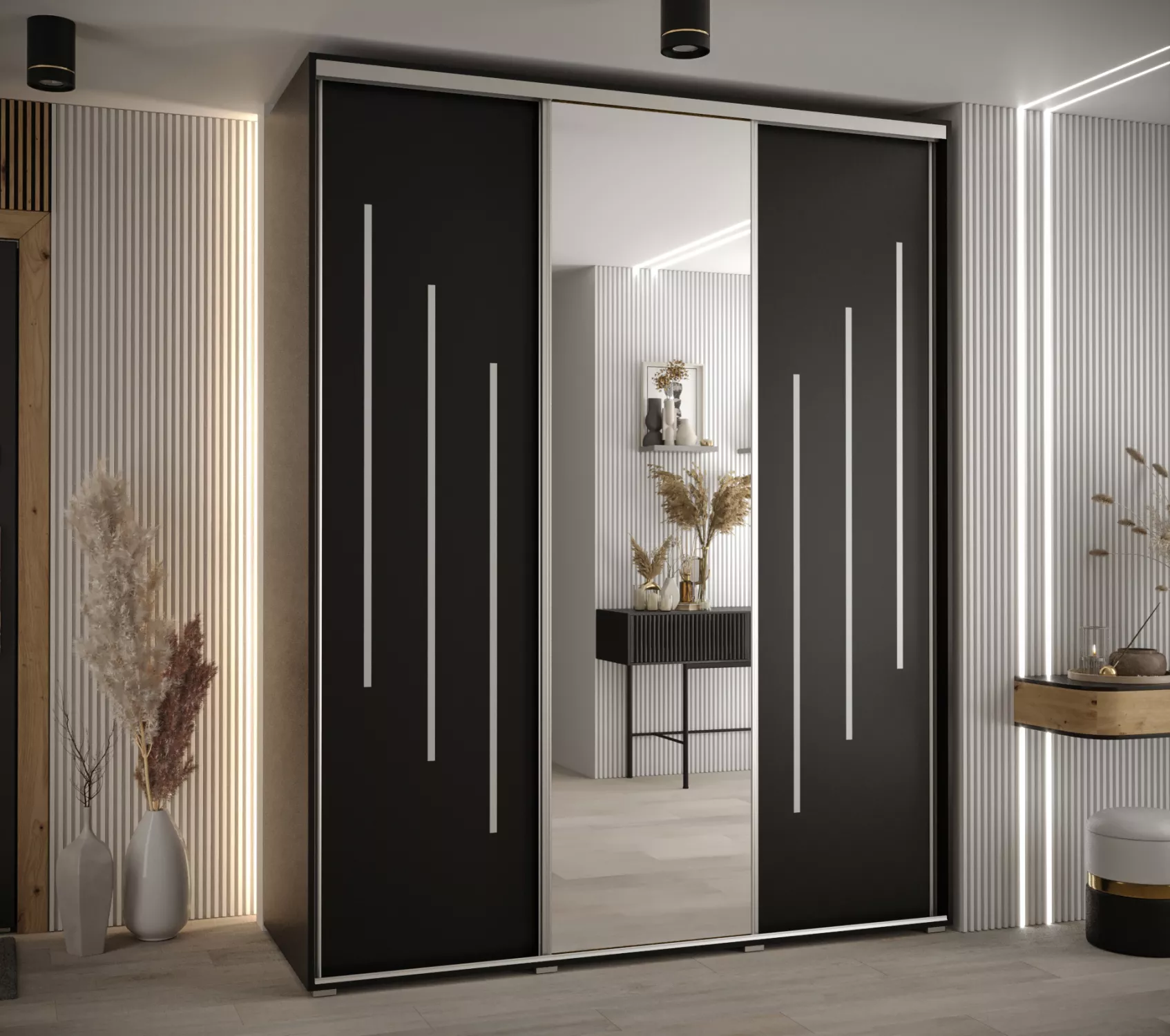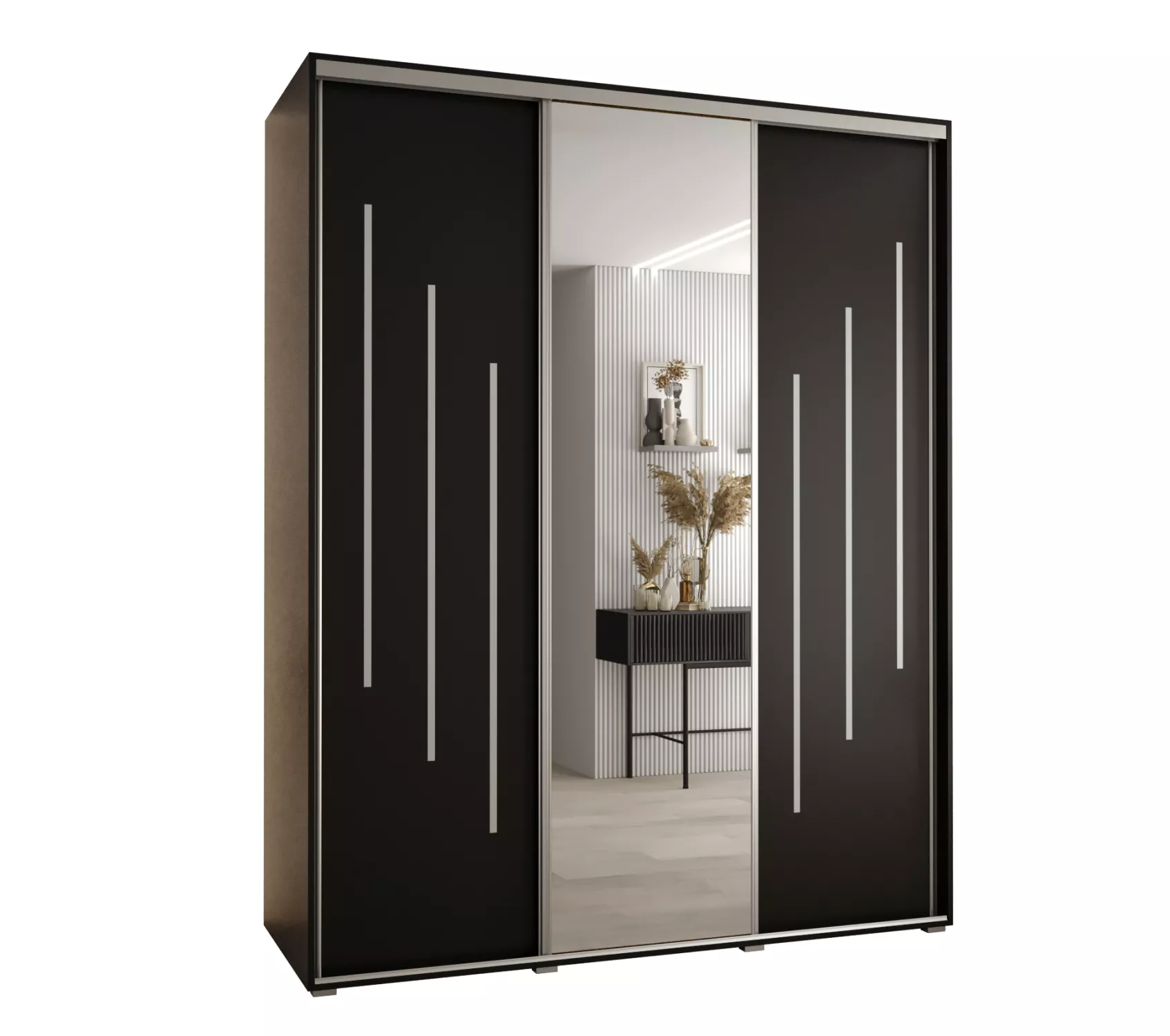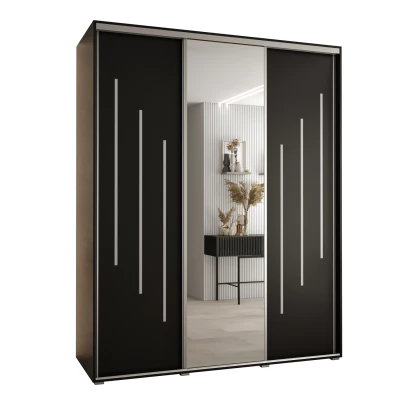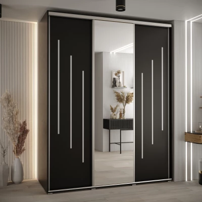 Šatní skříň YVONA 9 - 200/60 cm, černá / stříbrná