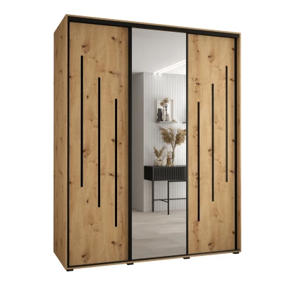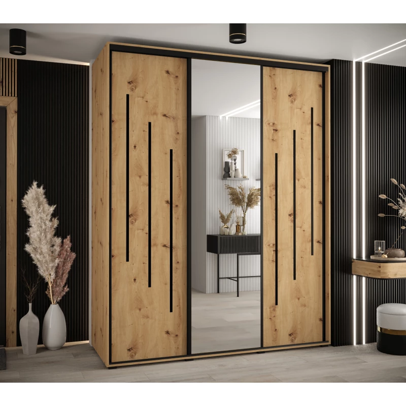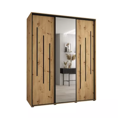 Šatní skříň YVONA 9 - 200/60 cm, dub artisan / černá