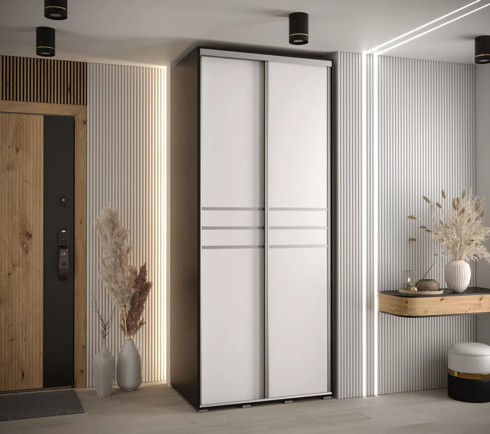 Šatní skříň YVONA 10 - 100/60 cm, černá / bílá / stříbrná