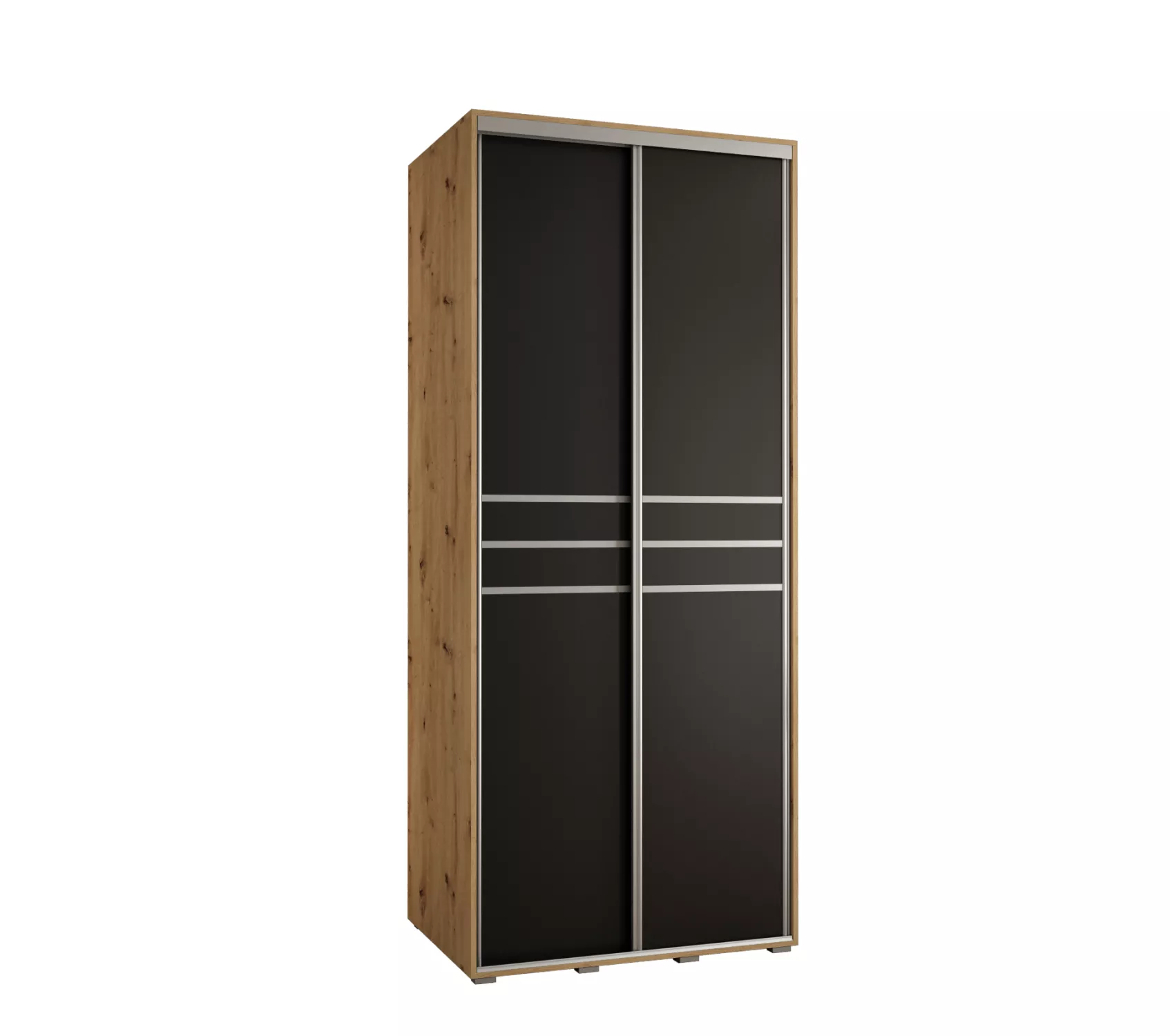 Šatní skříň YVONA 10 - 100/60 cm, dub artisan / černá / stříbrná