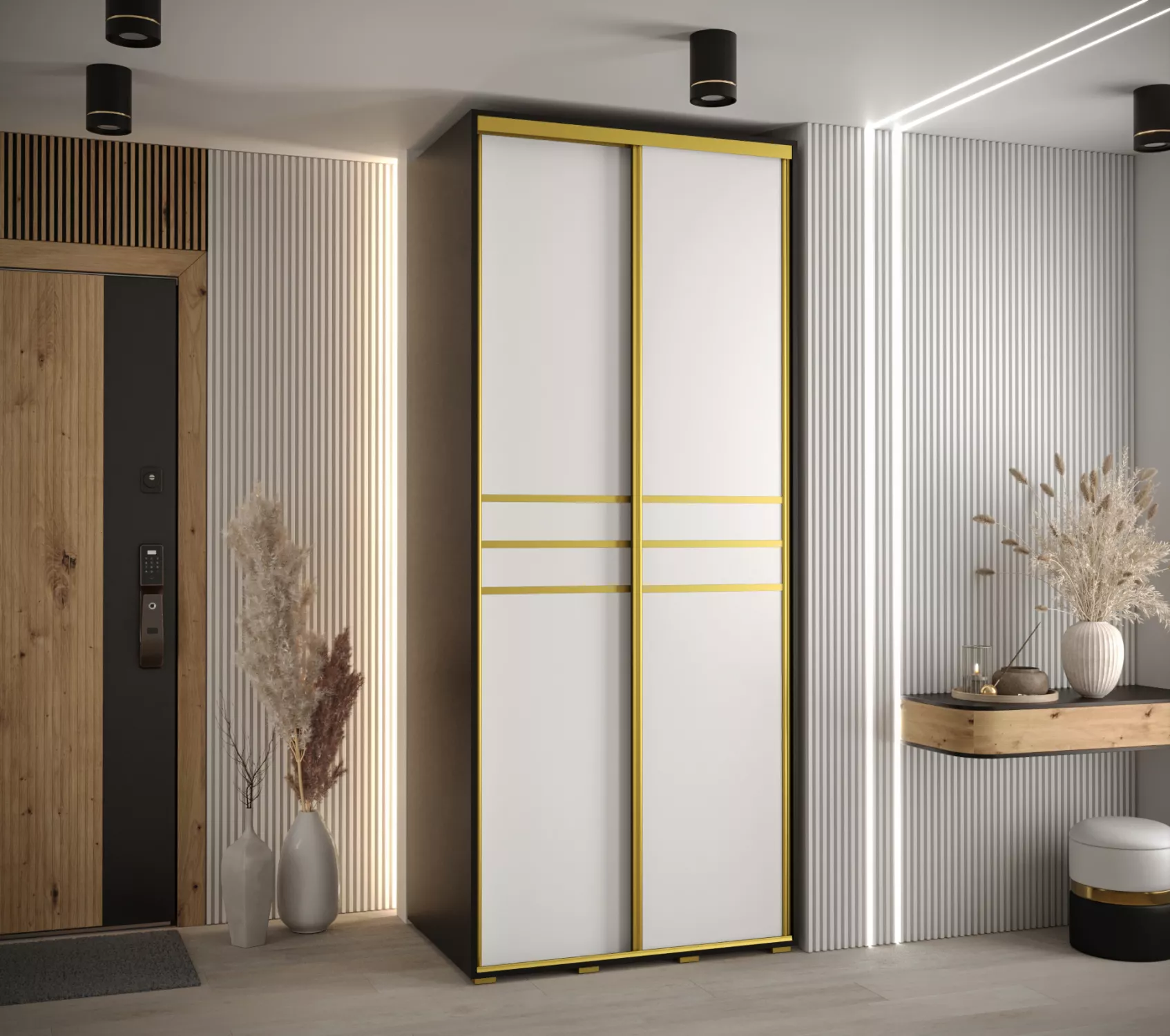 Šatní skříň YVONA 10 - 110/60 cm, černá / bílá / zlatá