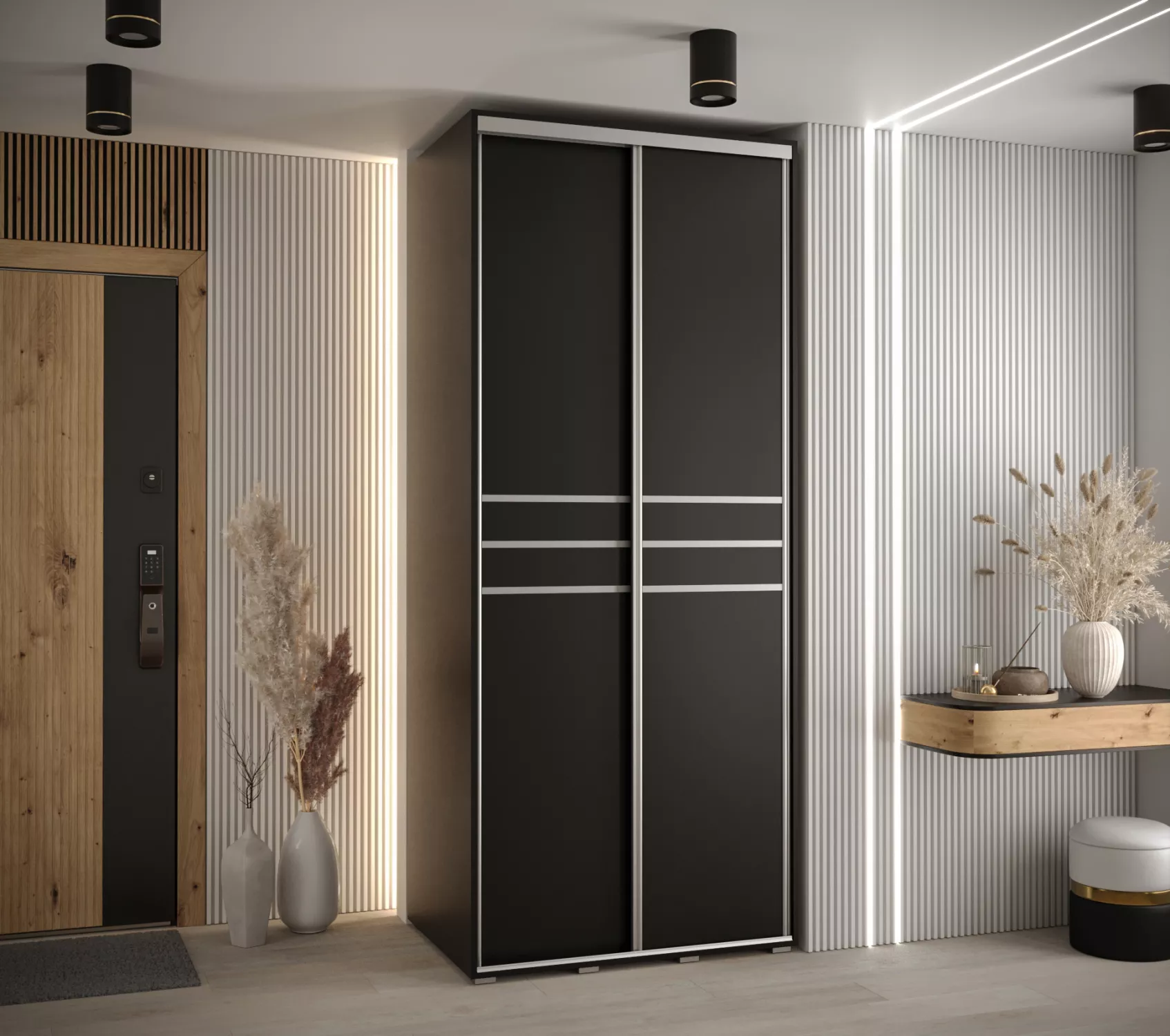 Šatní skříň YVONA 10 - 110/60 cm, černá / stříbrná