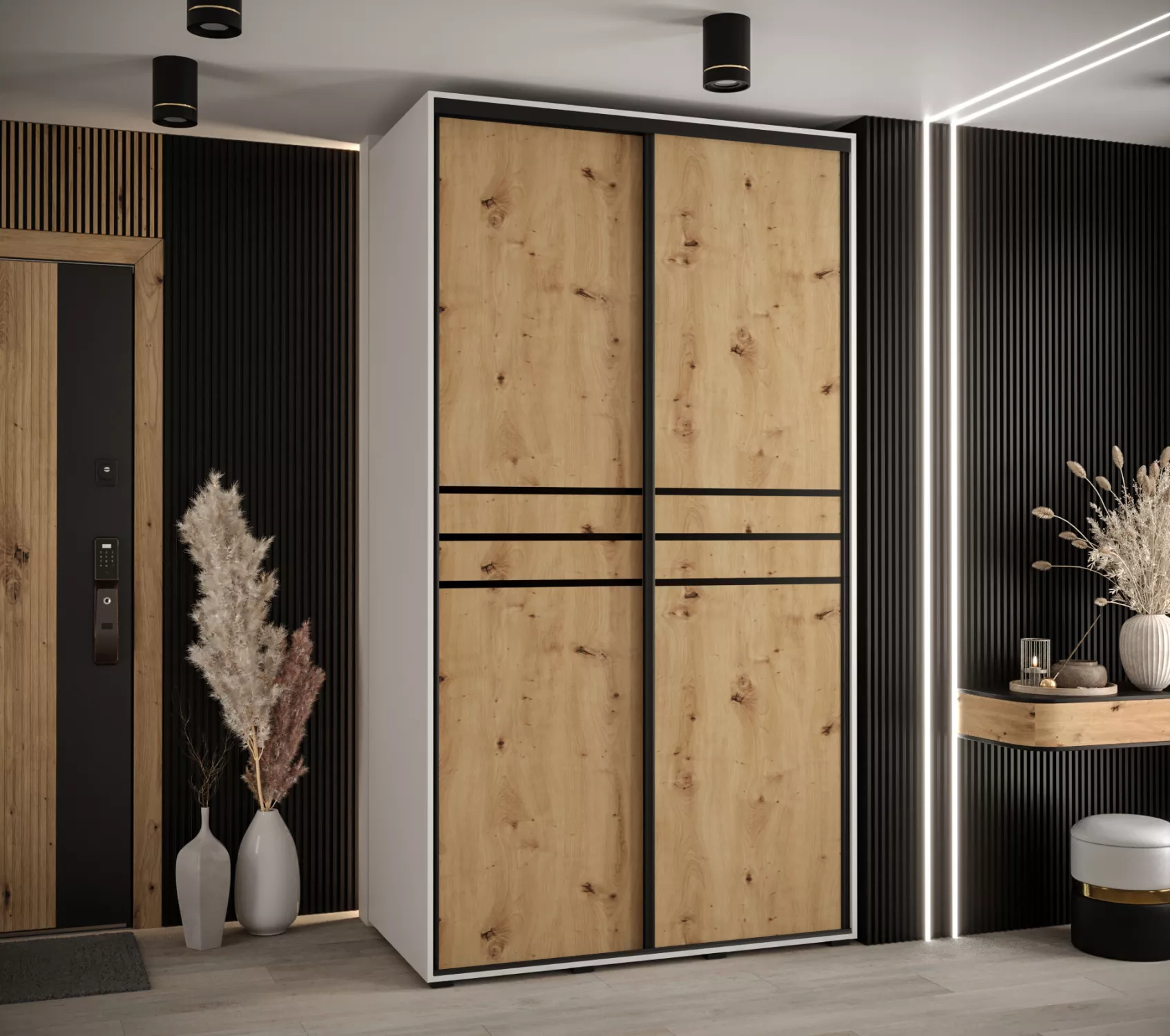 Šatní skříň YVONA 10 - 130/60 cm, bílá / dub artisan / černá