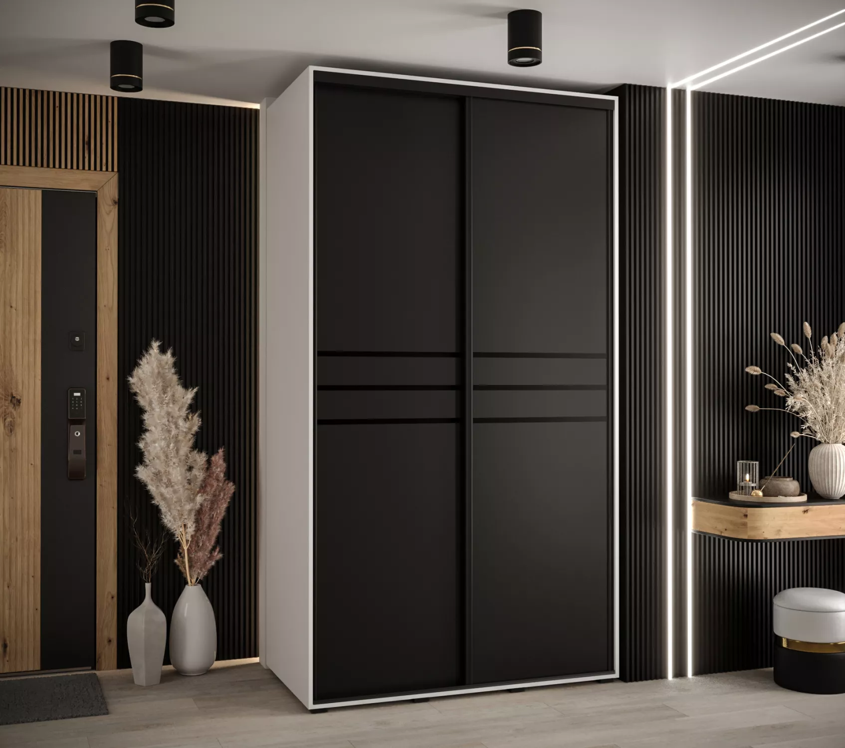 Šatní skříň YVONA 10 - 130/60 cm, bílá / černá / černá