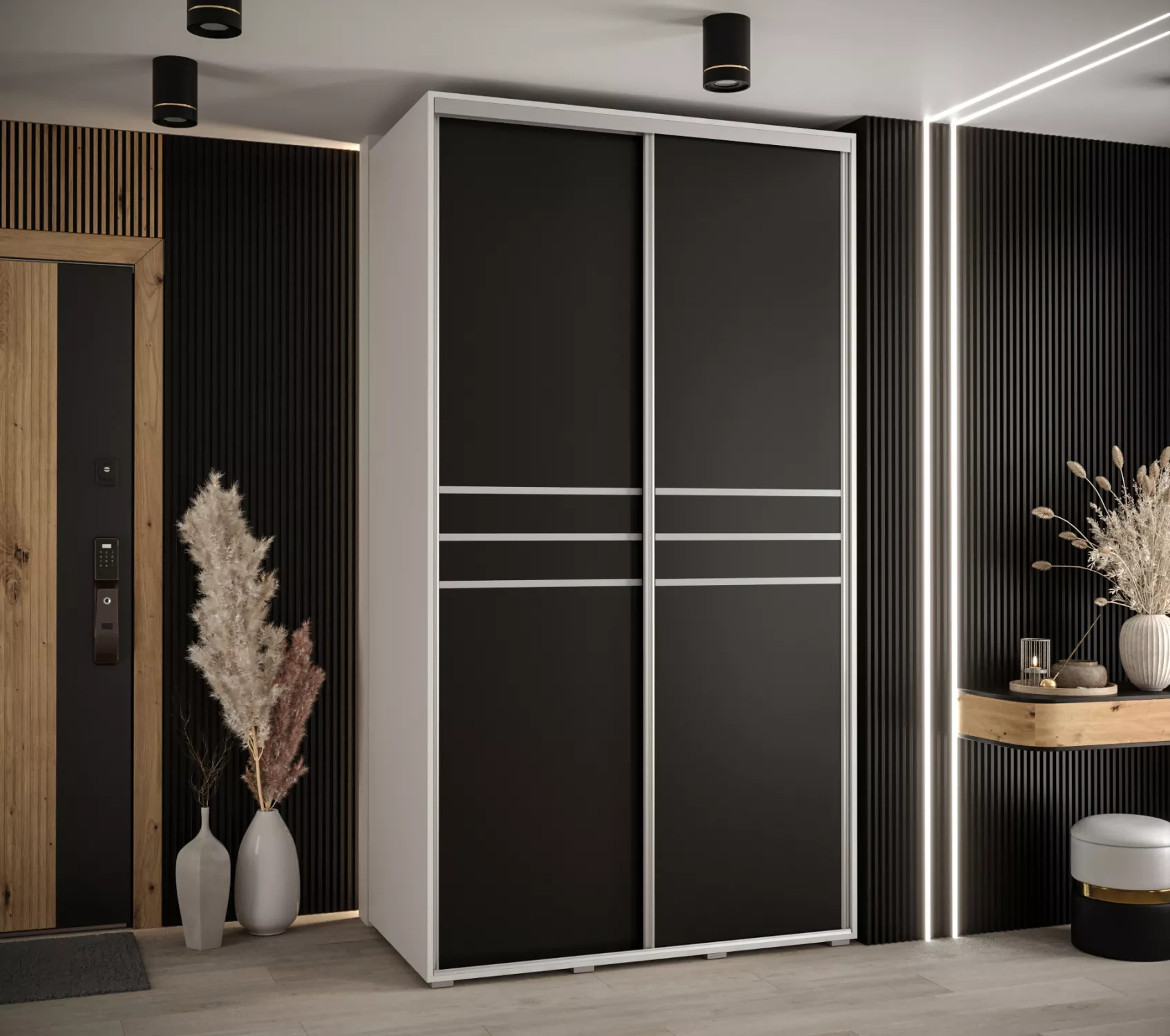 Šatní skříň YVONA 10 - 130/60 cm, bílá / černá / stříbrná