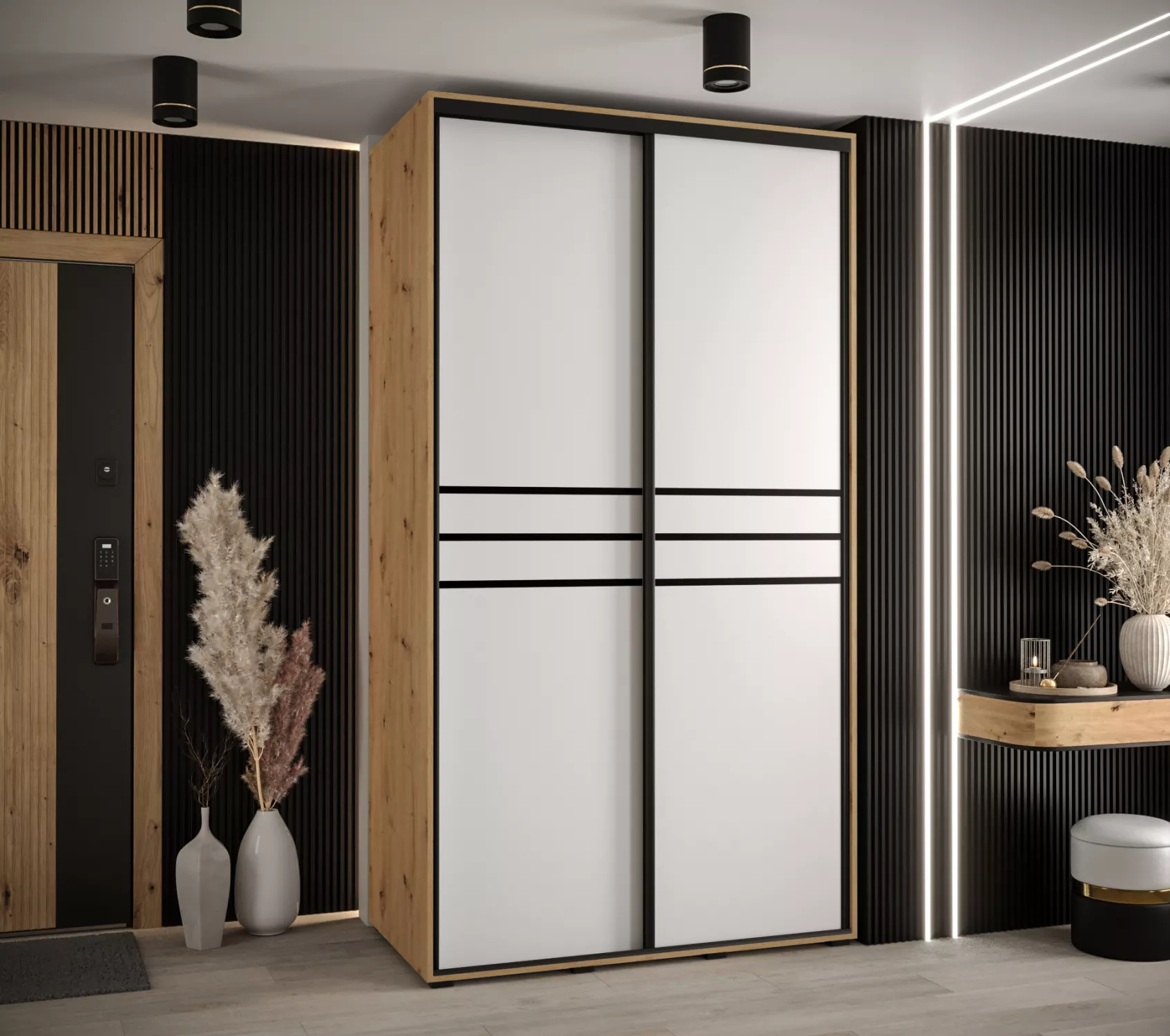 Šatní skříň YVONA 10 - 140/60 cm, dub artisan / bílá / černá
