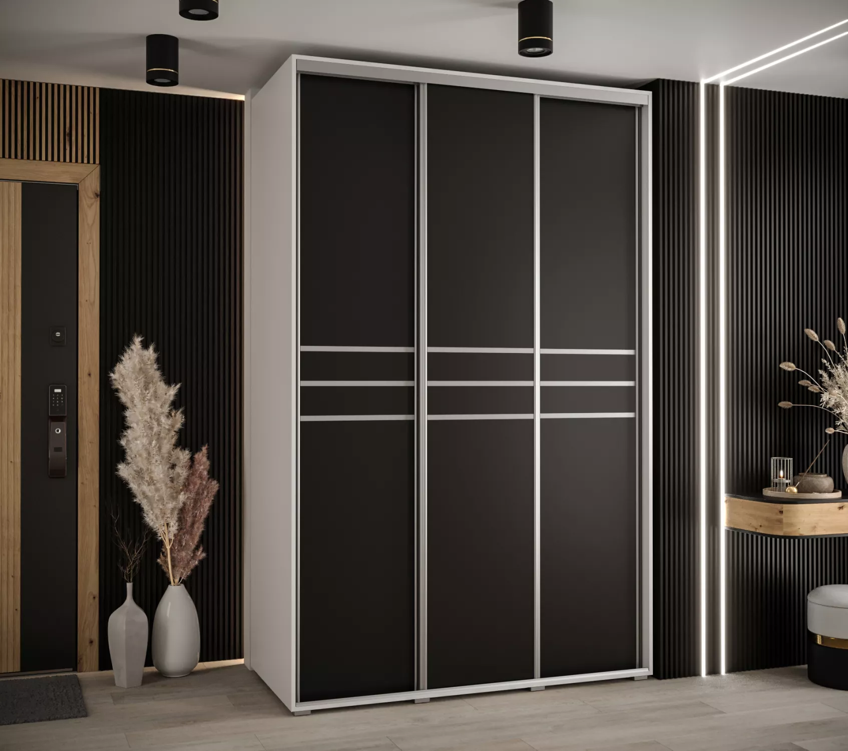 Šatní skříň YVONA 10 - 150/60 cm, bílá / černá / stříbrná