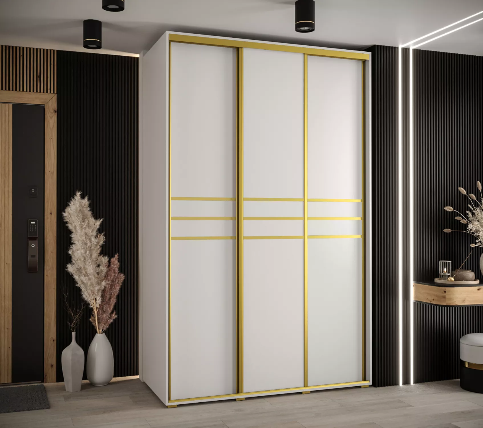 Šatní skříň YVONA 10 - 150/60 cm, bílá / zlatá