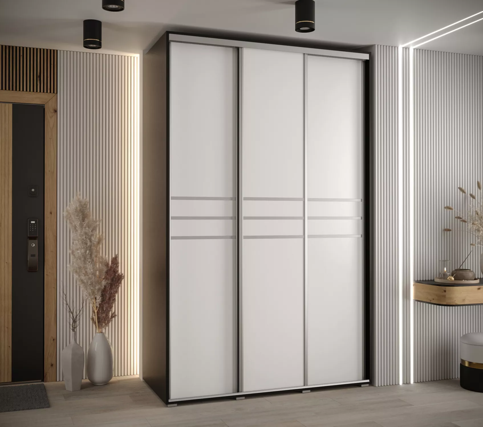 Šatní skříň YVONA 10 - 150/60 cm, černá / bílá / stříbrná