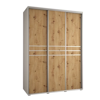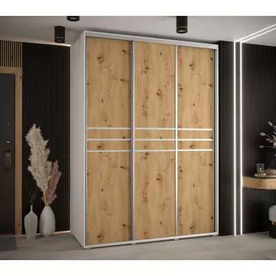 Šatní skříň YVONA 10 - 180/60 cm, bílá / dub artisan / stříbrná
