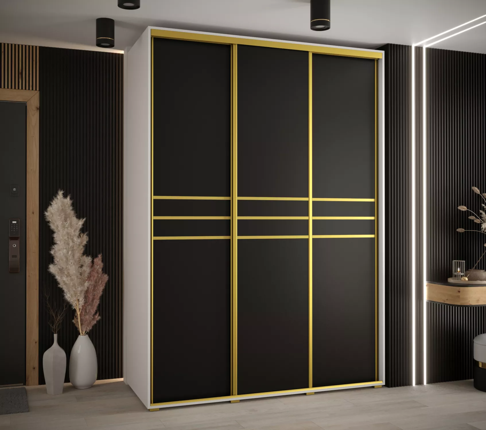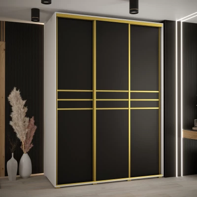 Šatní skříň YVONA 10 - 180/60 cm, bílá / černá / zlatá