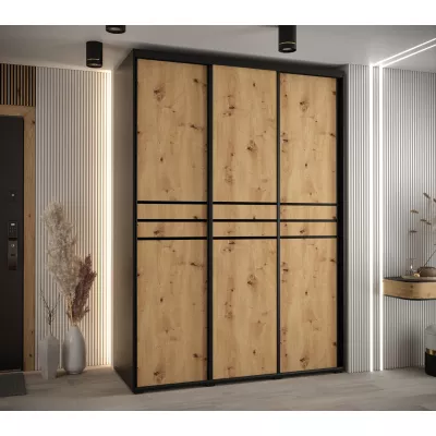 Šatní skříň YVONA 10 - 180/60 cm, černá / dub artisan / černá