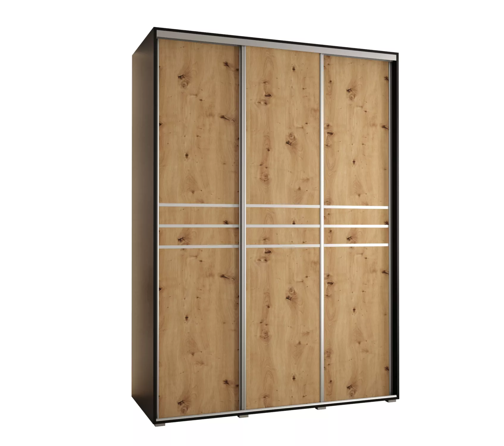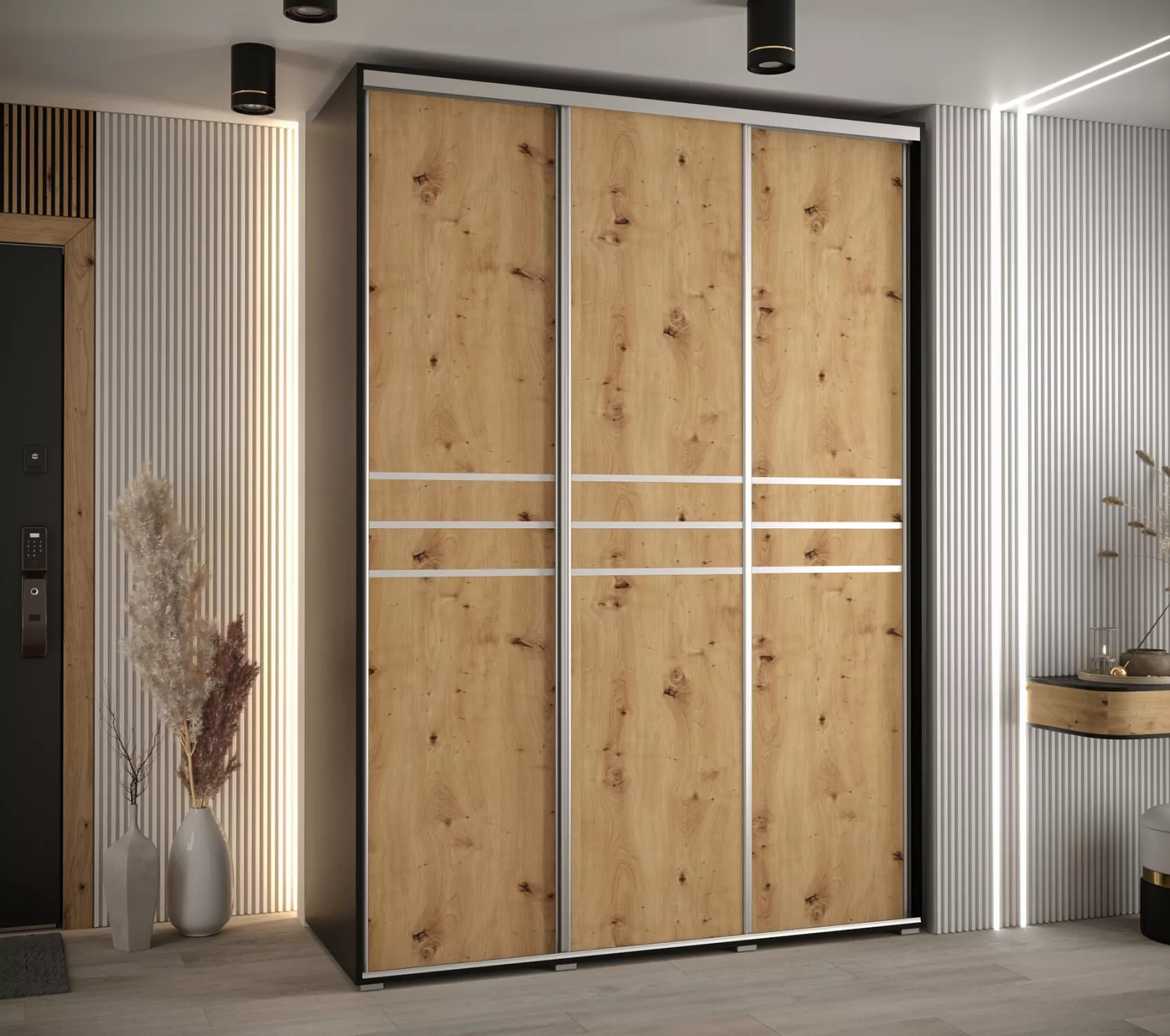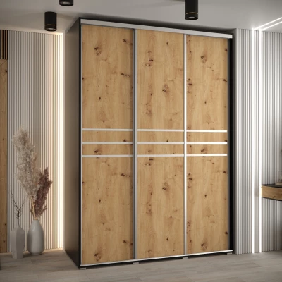 Šatní skříň YVONA 10 - 180/60 cm, černá / dub artisan / stříbrná