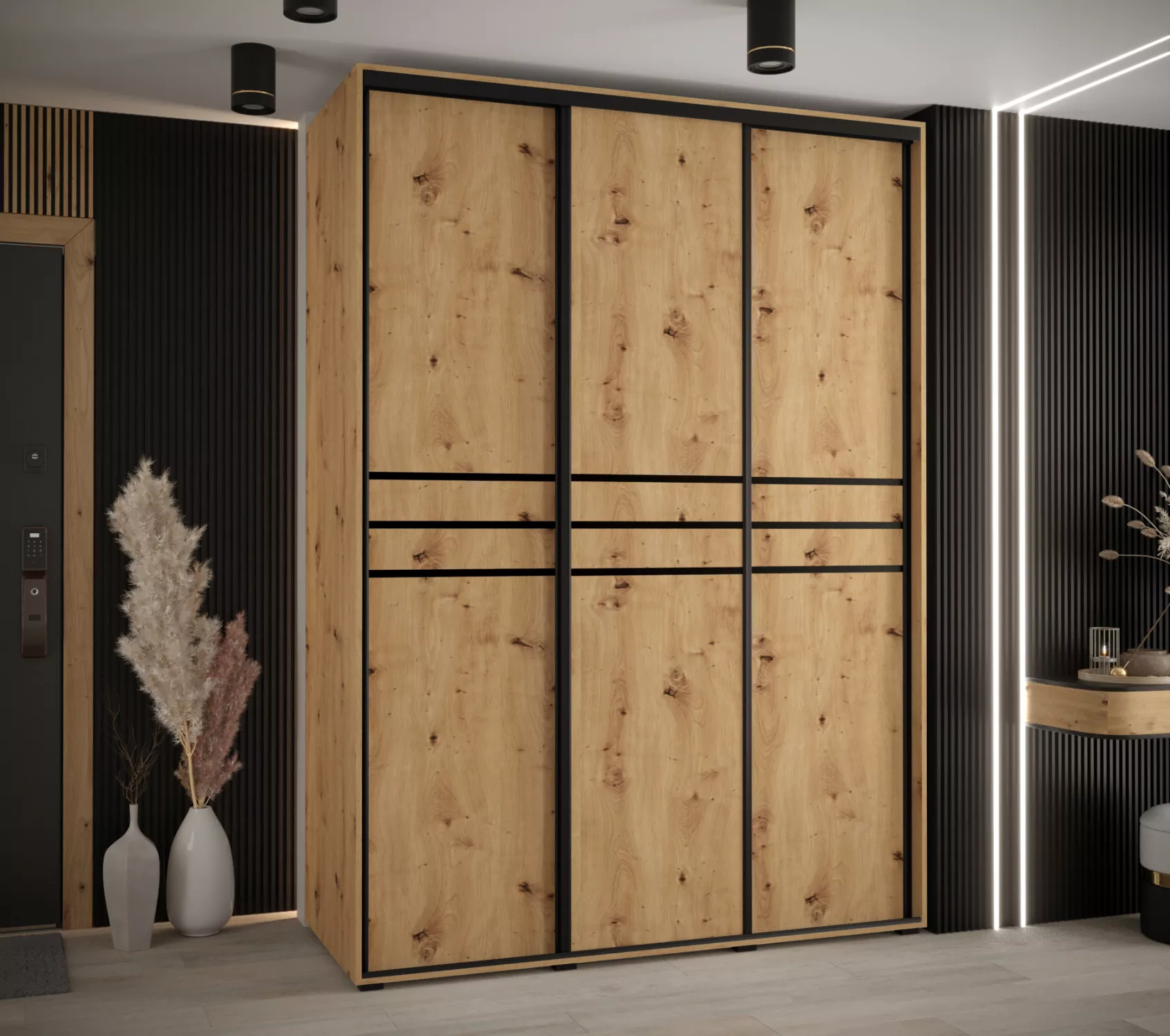 Šatní skříň YVONA 10 - 180/60 cm, dub artisan / černá