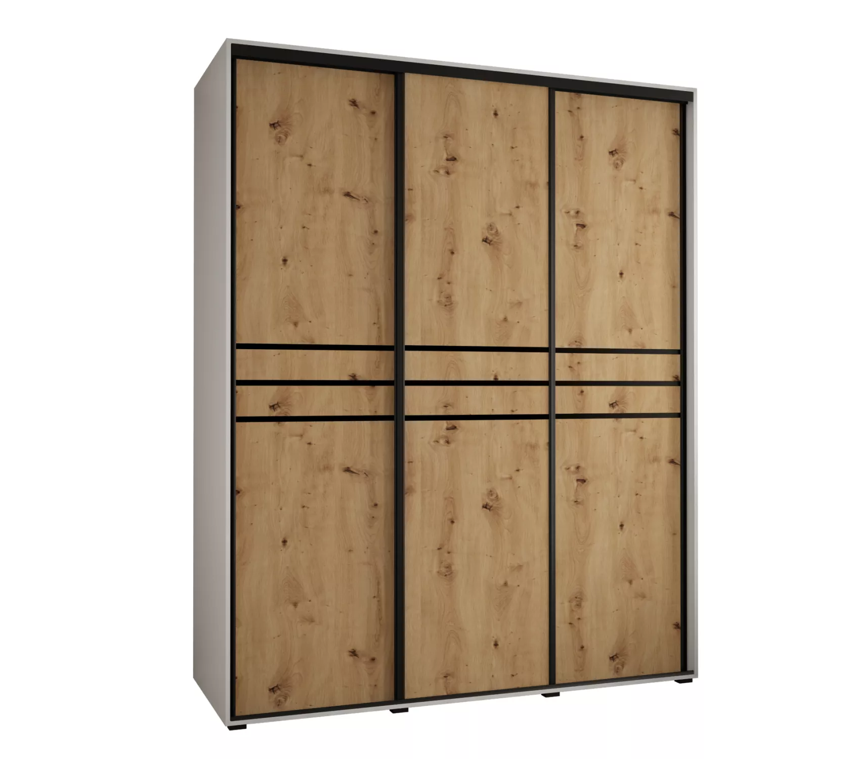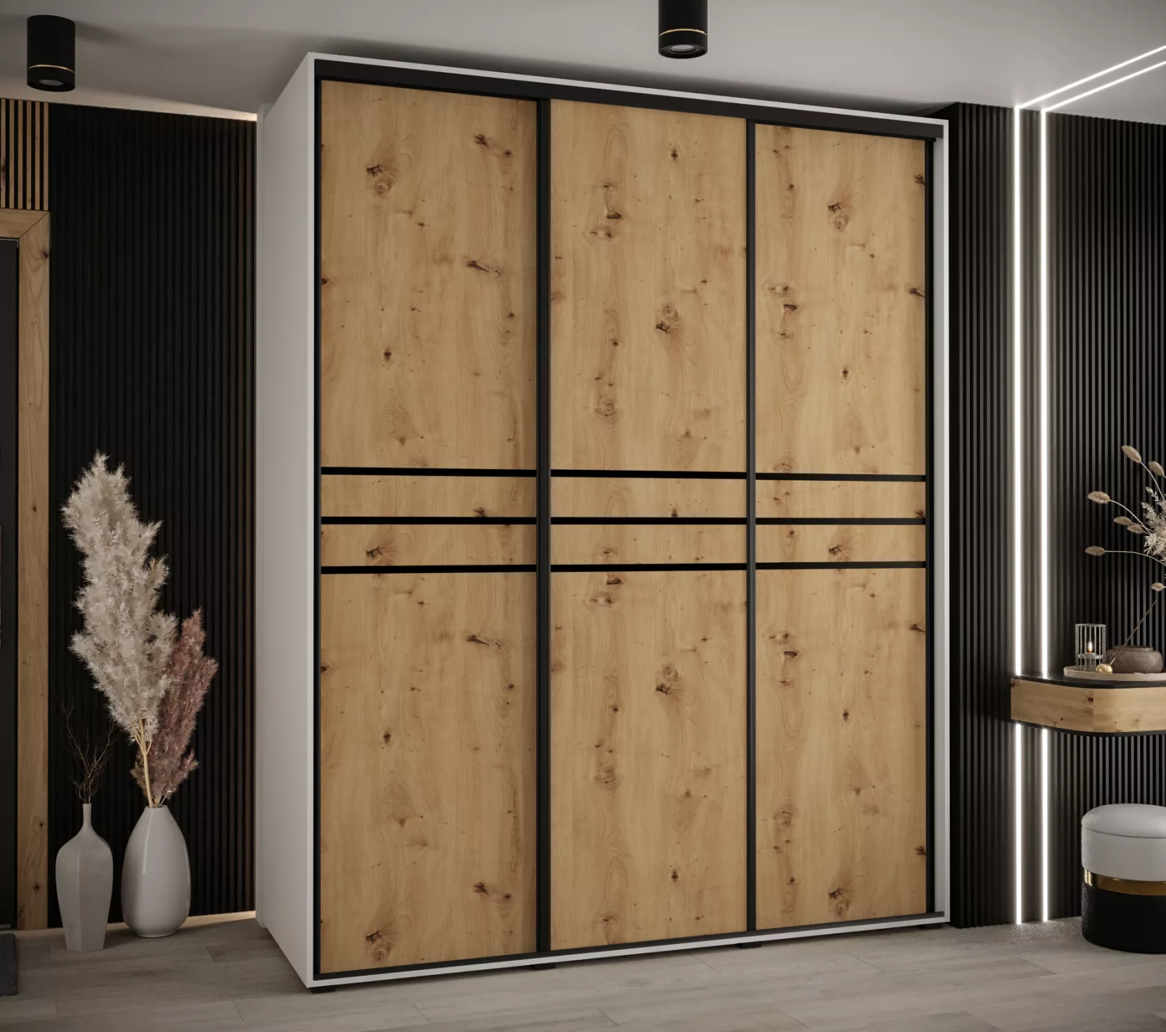 Šatní skříň YVONA 10 - 190/60 cm, bílá / dub artisan / černá