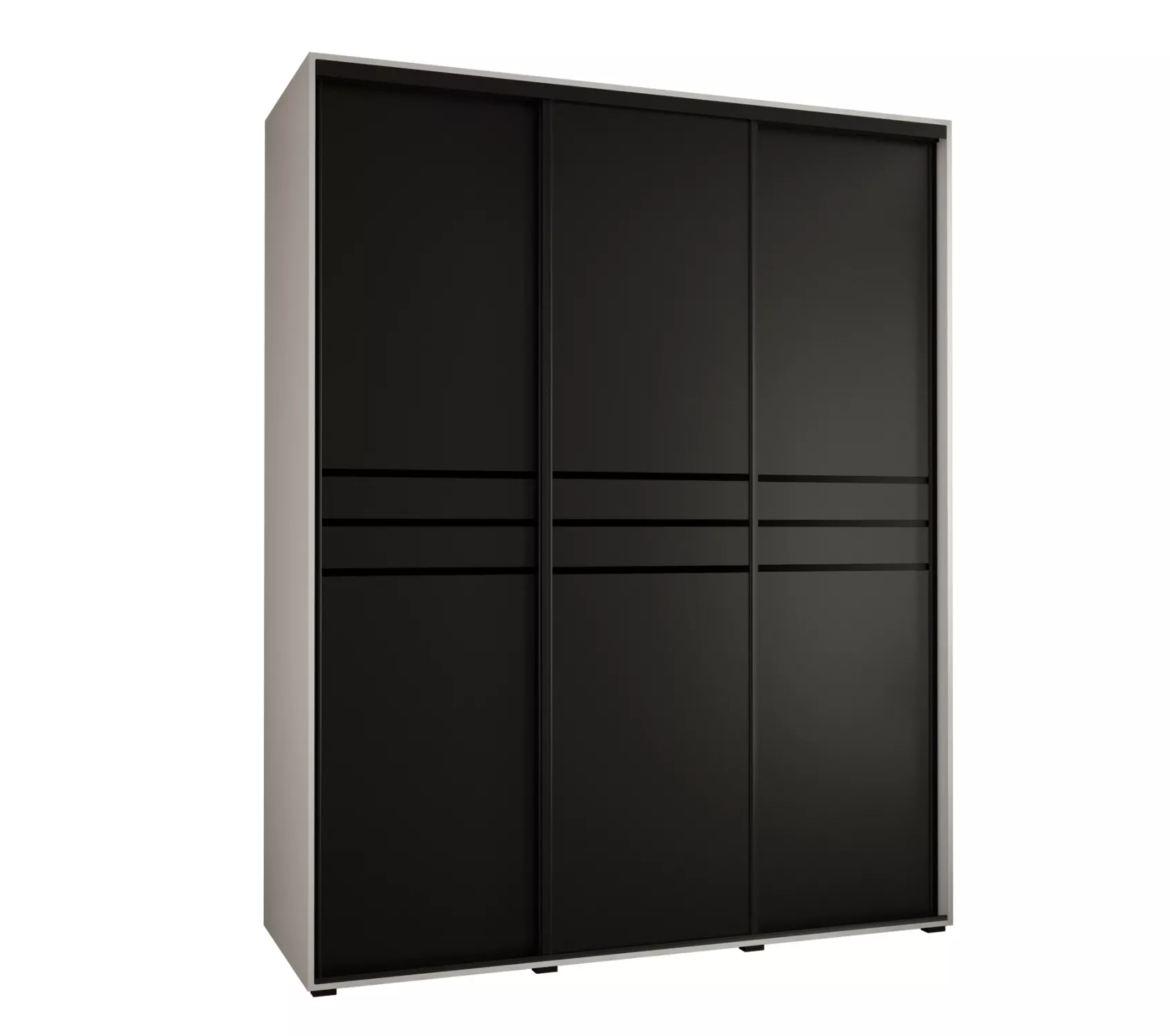 Šatní skříň YVONA 10 - 190/60 cm, bílá / černá / černá