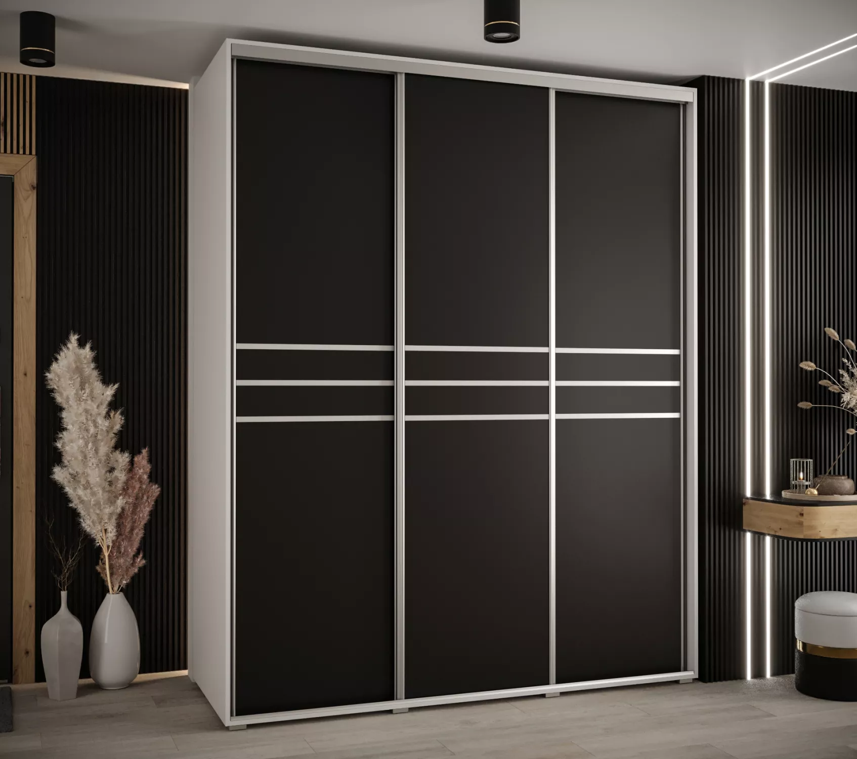 Šatní skříň YVONA 10 - 200/60 cm, bílá / černá / stříbrná