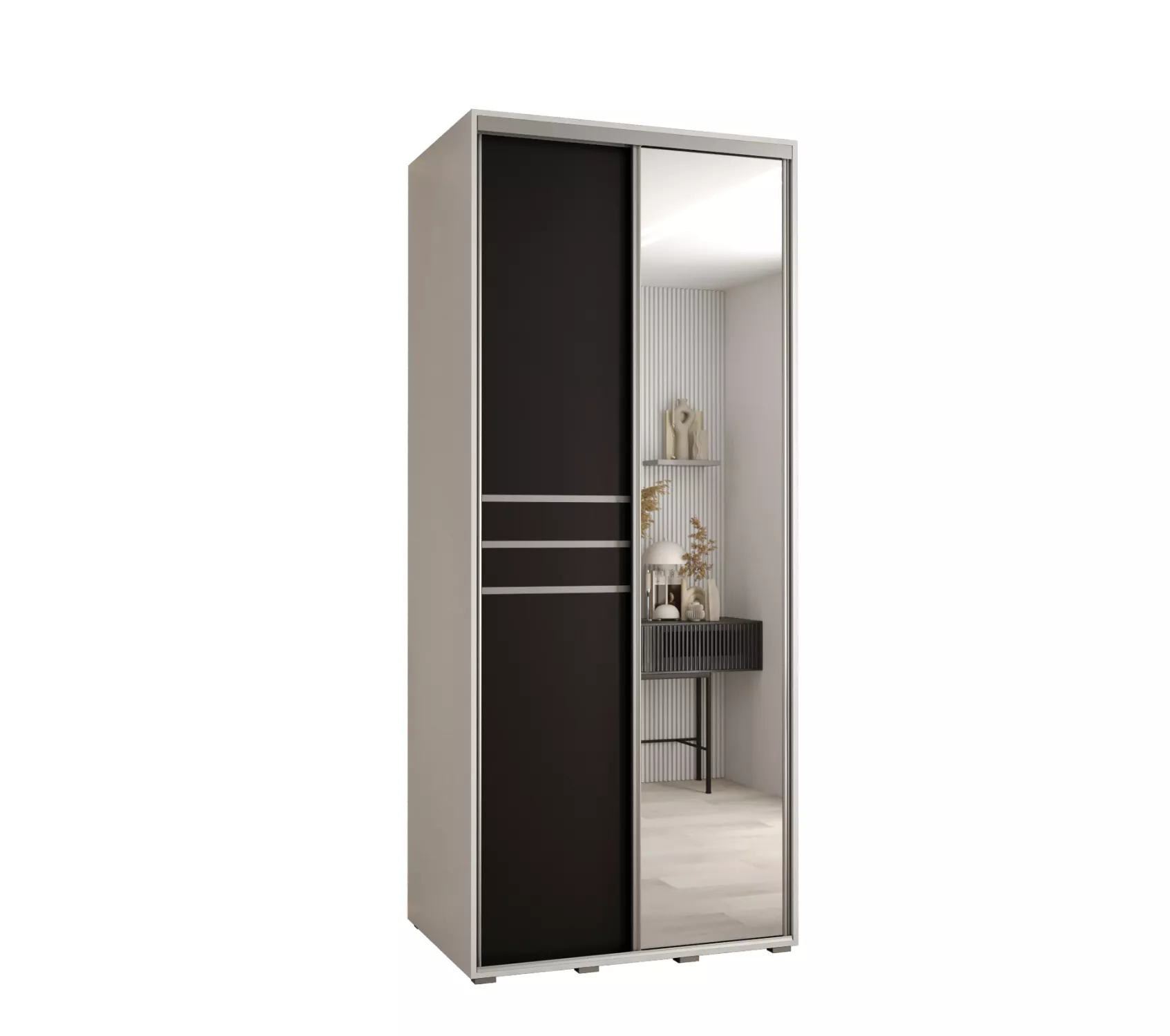 Šatní skříň YVONA 11 - 110/60 cm, bílá / černá / stříbrná