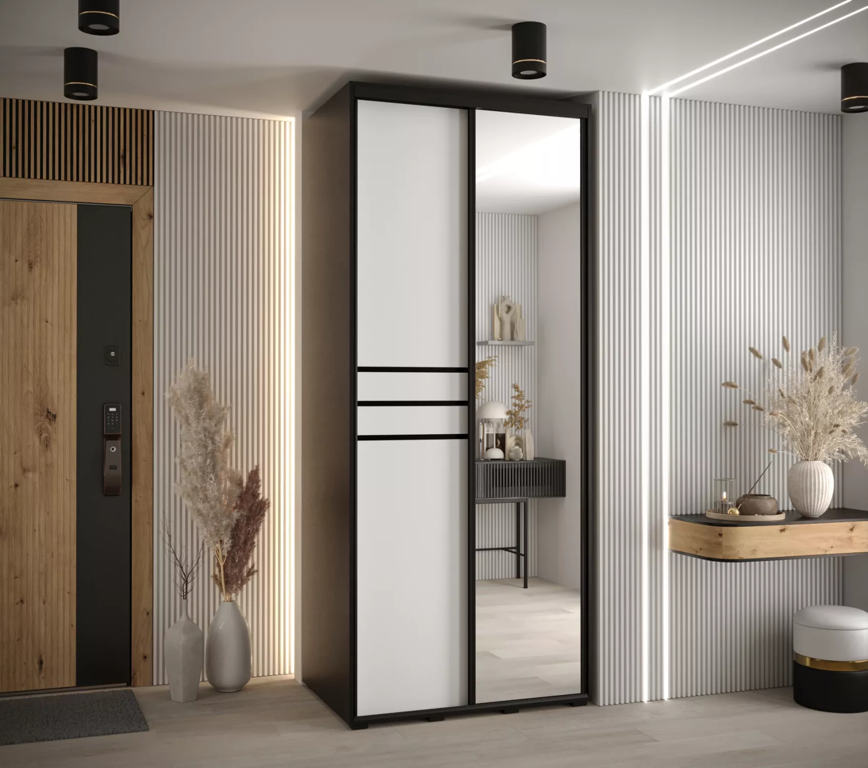 Šatní skříň YVONA 11 - 110/60 cm, černá / bílá / černá