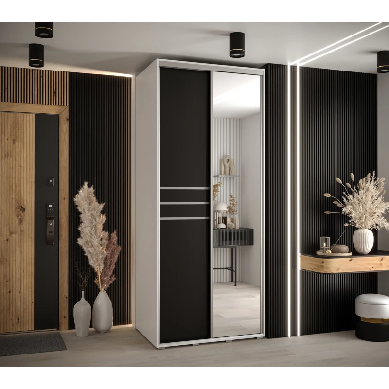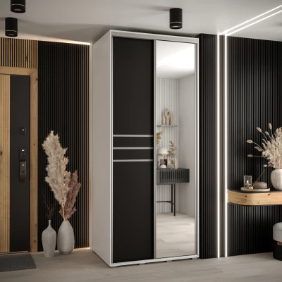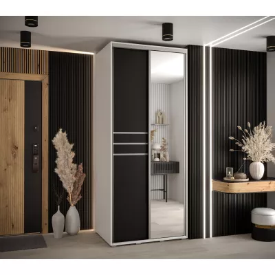 Šatní skříň YVONA 11 - 120/60 cm, bílá / černá / stříbrná
