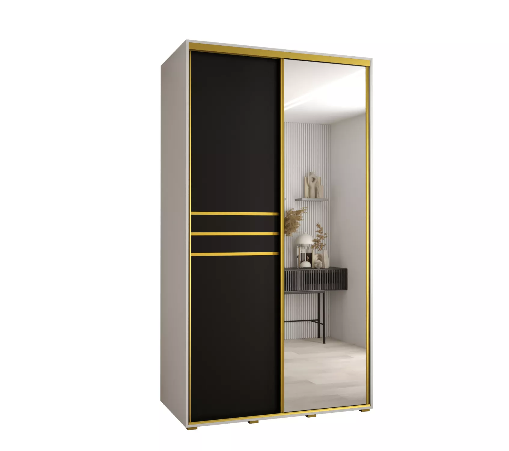 Šatní skříň YVONA 11 - 130/60 cm, bílá / černá / zlatá