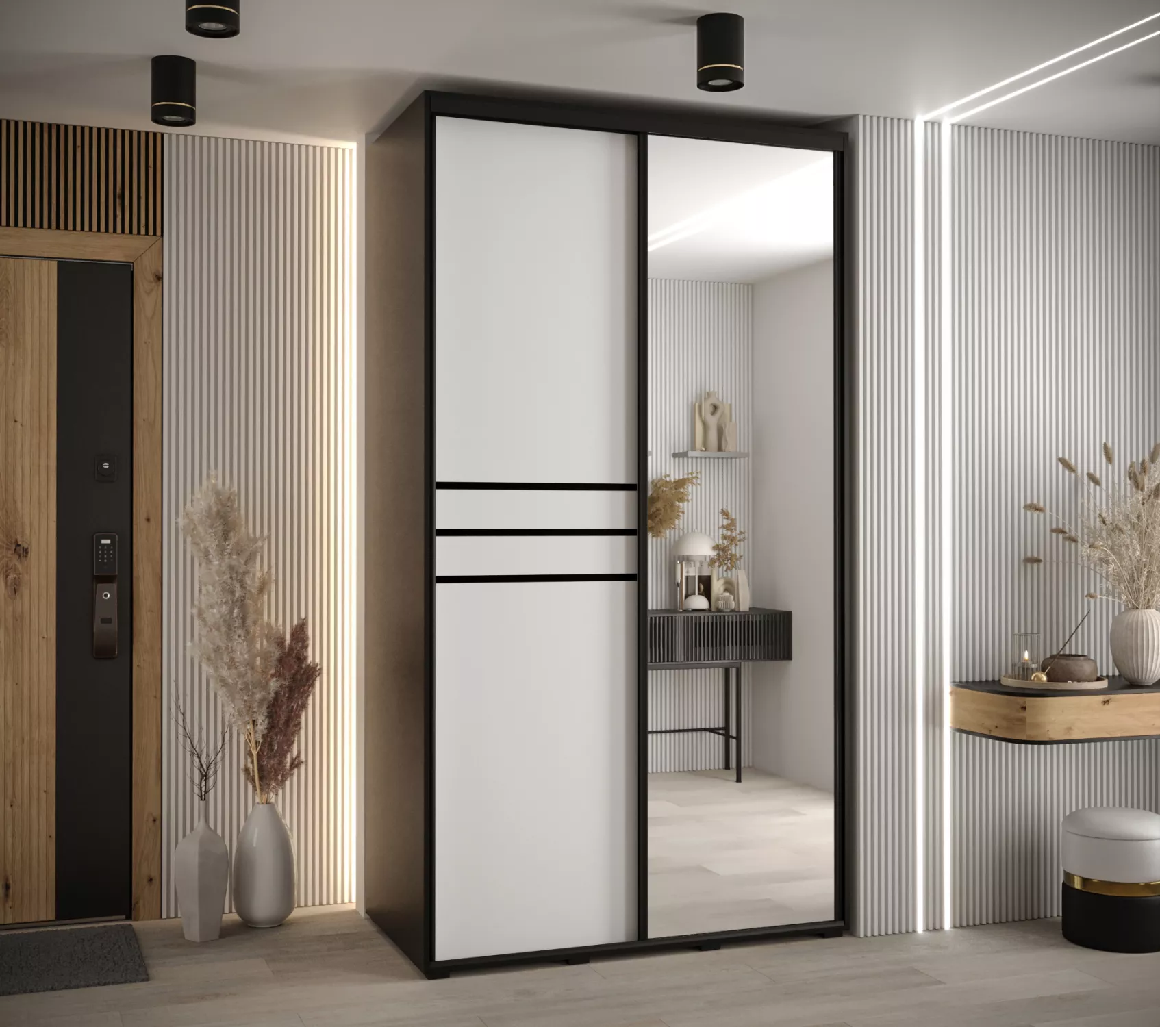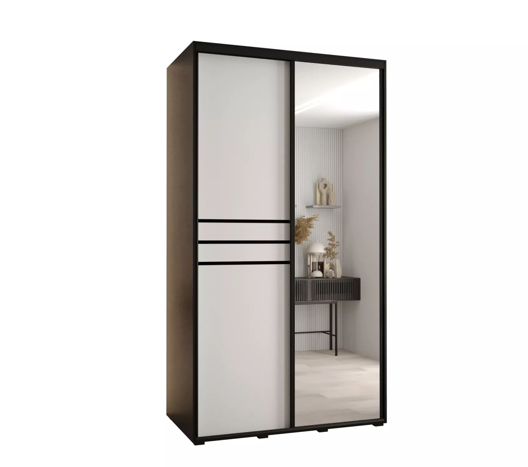 Šatní skříň YVONA 11 - 130/60 cm, černá / bílá / černá
