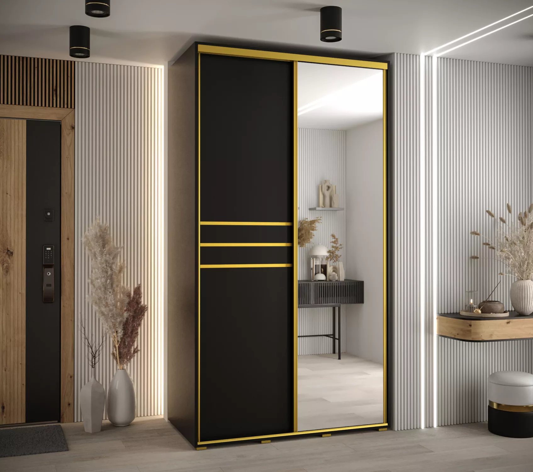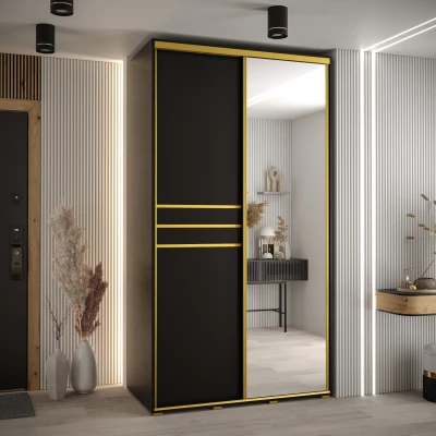 Šatní skříň YVONA 11 - 130/60 cm, černá / zlatá