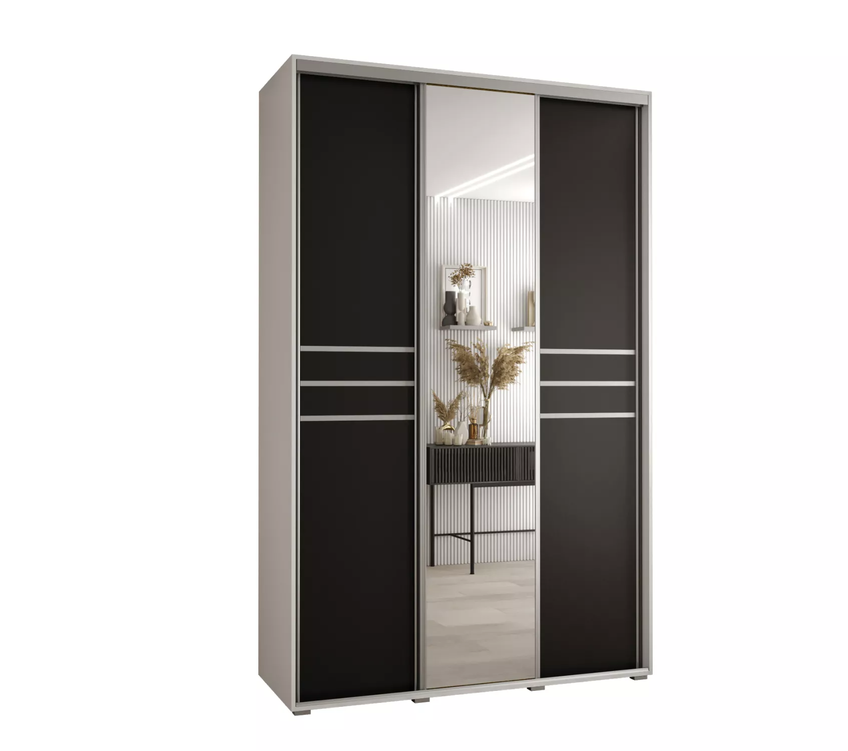 Šatní skříň YVONA 11 - 150/60 cm, bílá / černá / stříbrná