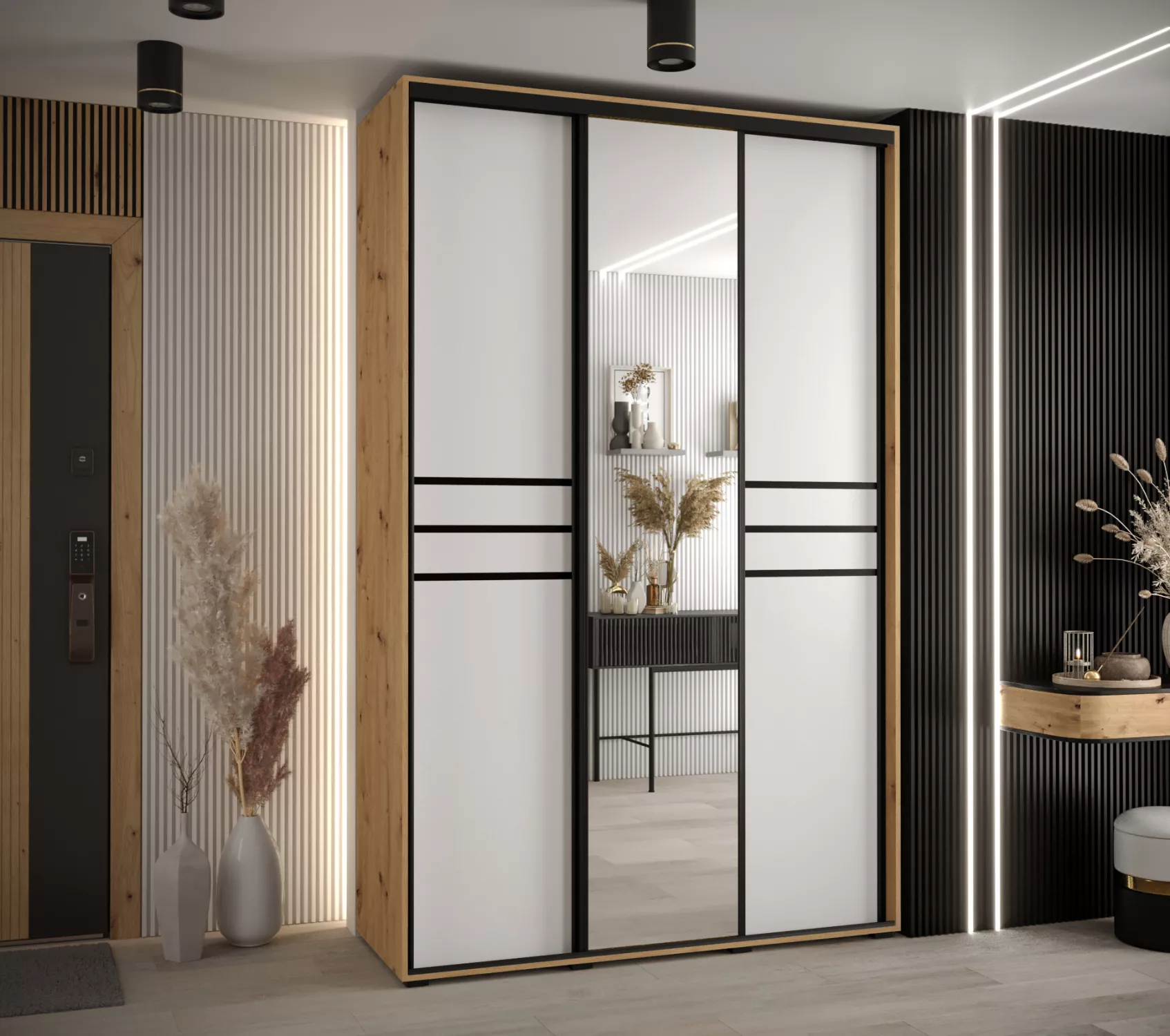 Šatní skříň YVONA 11 - 160/60 cm, dub artisan / bílá / černá