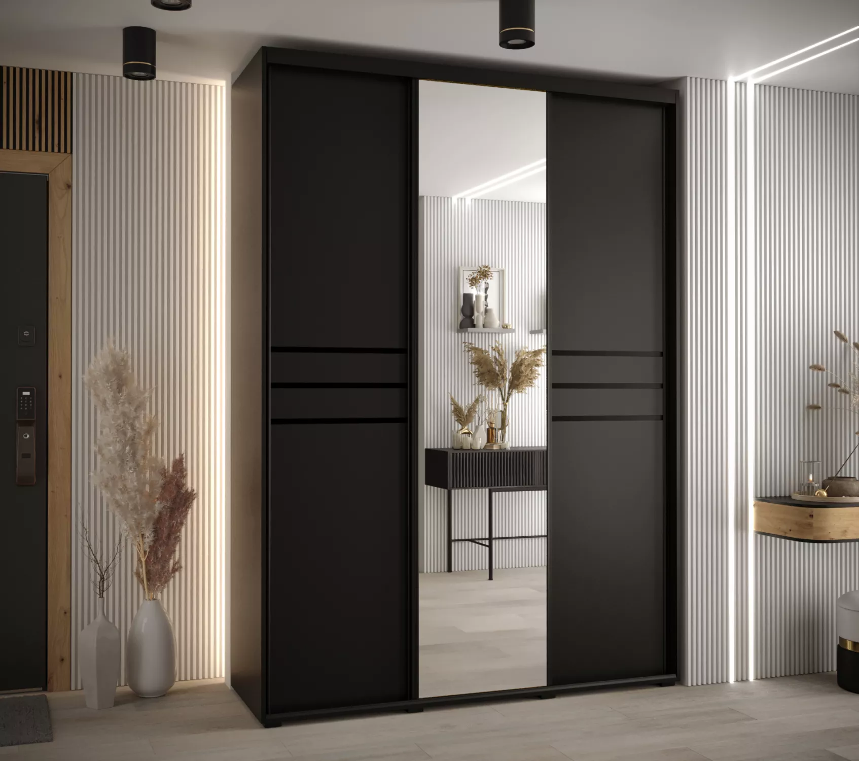 Šatní skříň YVONA 11 - 170/60 cm, černá / černá