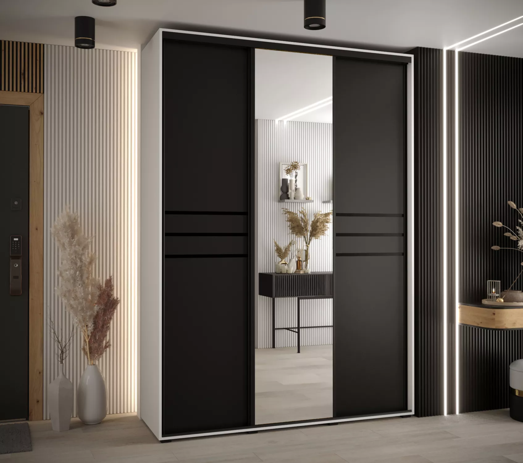 Šatní skříň YVONA 11 - 180/60 cm, bílá / černá / černá