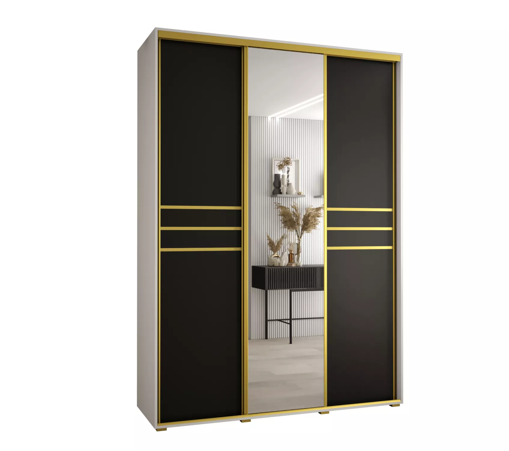 Šatní skříň YVONA 11 - 180/60 cm, bílá / černá / zlatá