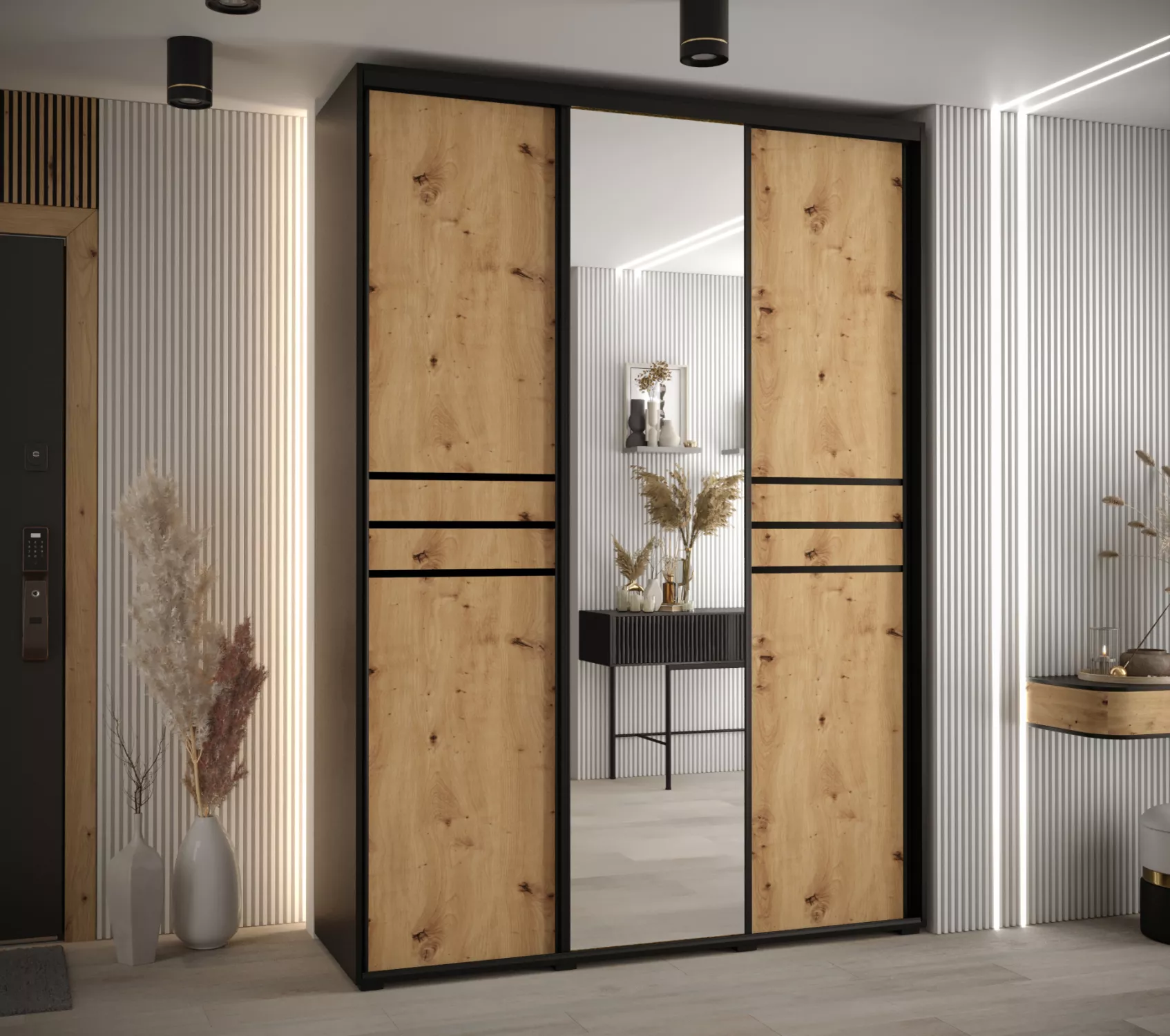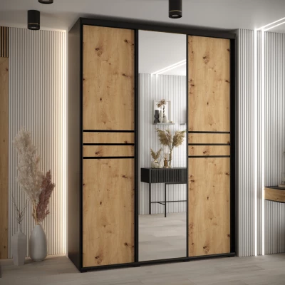 Šatní skříň YVONA 11 - 180/60 cm, černá / dub artisan / černá