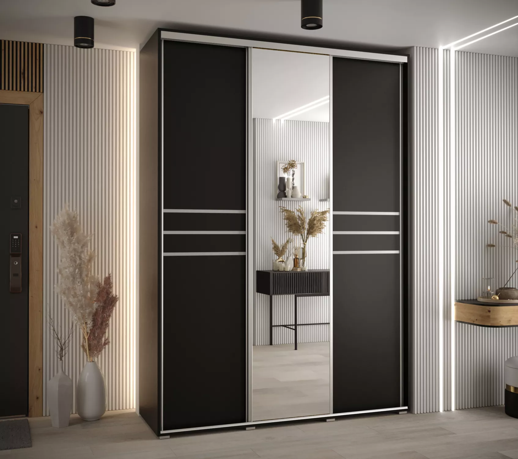 Šatní skříň YVONA 11 - 180/60 cm, černá / stříbrná