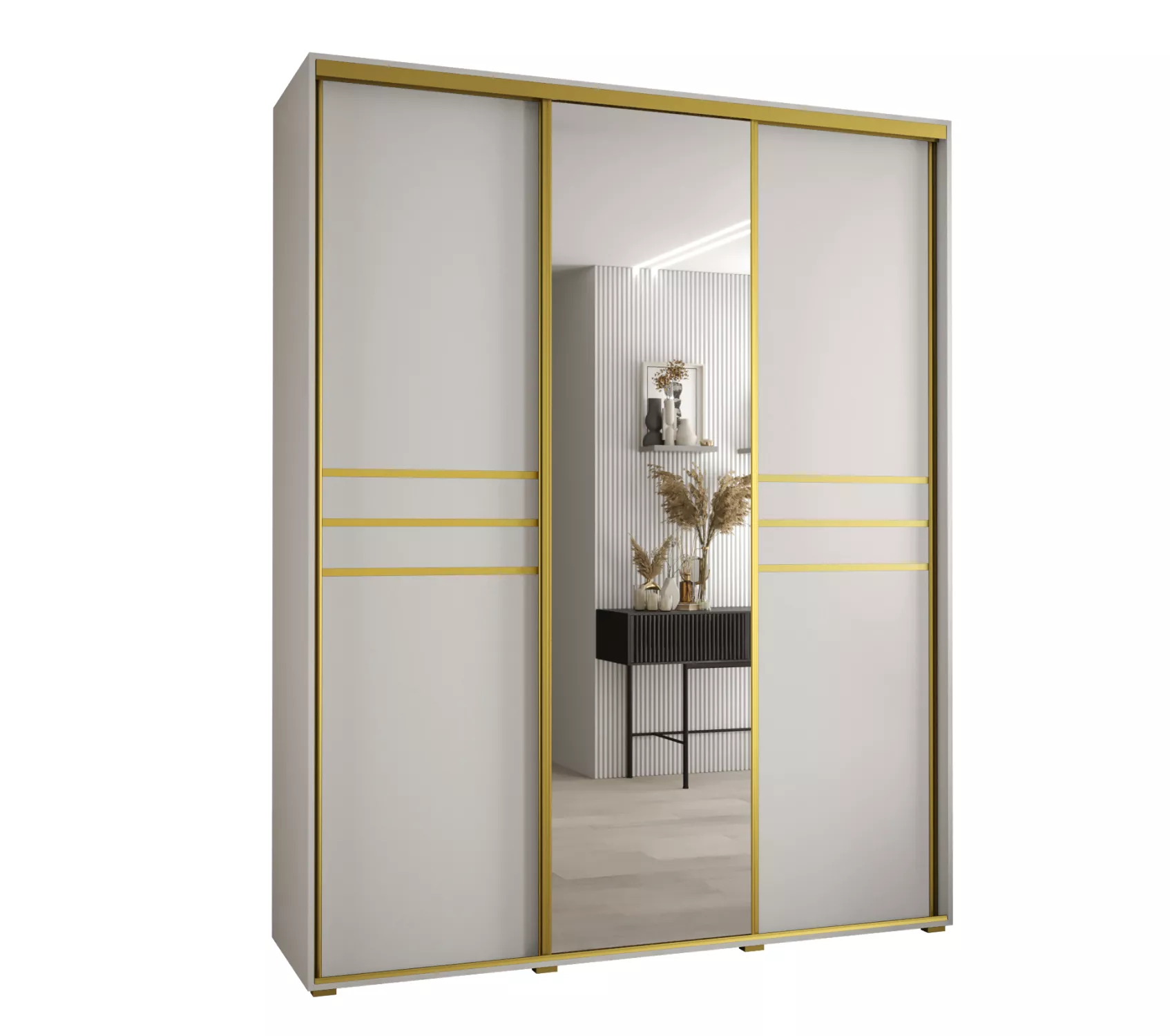 Šatní skříň YVONA 11 - 190/60 cm, bílá / zlatá