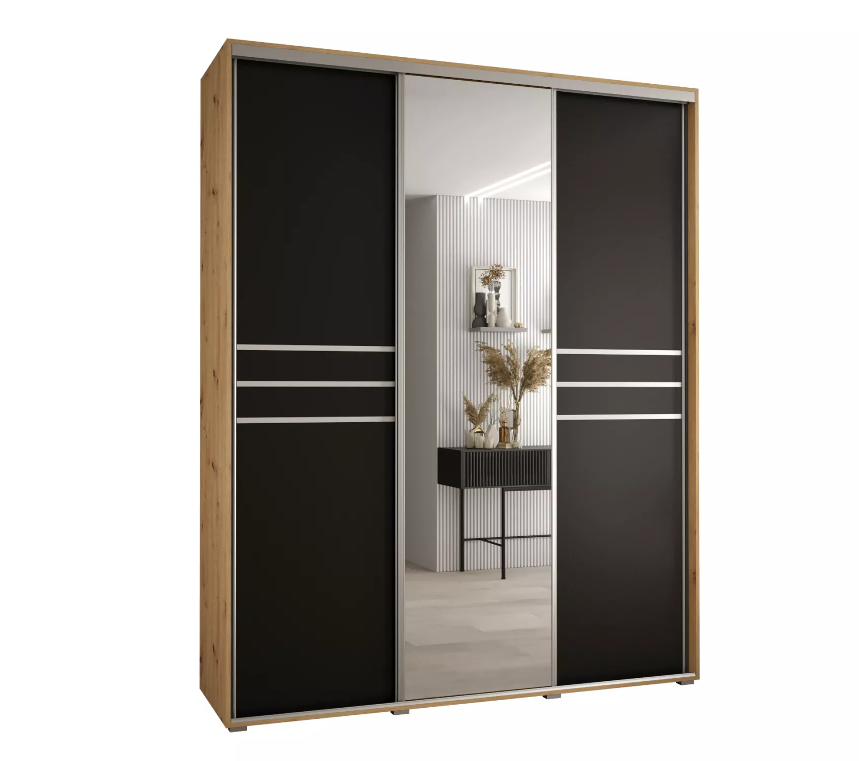 Šatní skříň YVONA 11 - 190/60 cm, dub artisan / černá / stříbrná