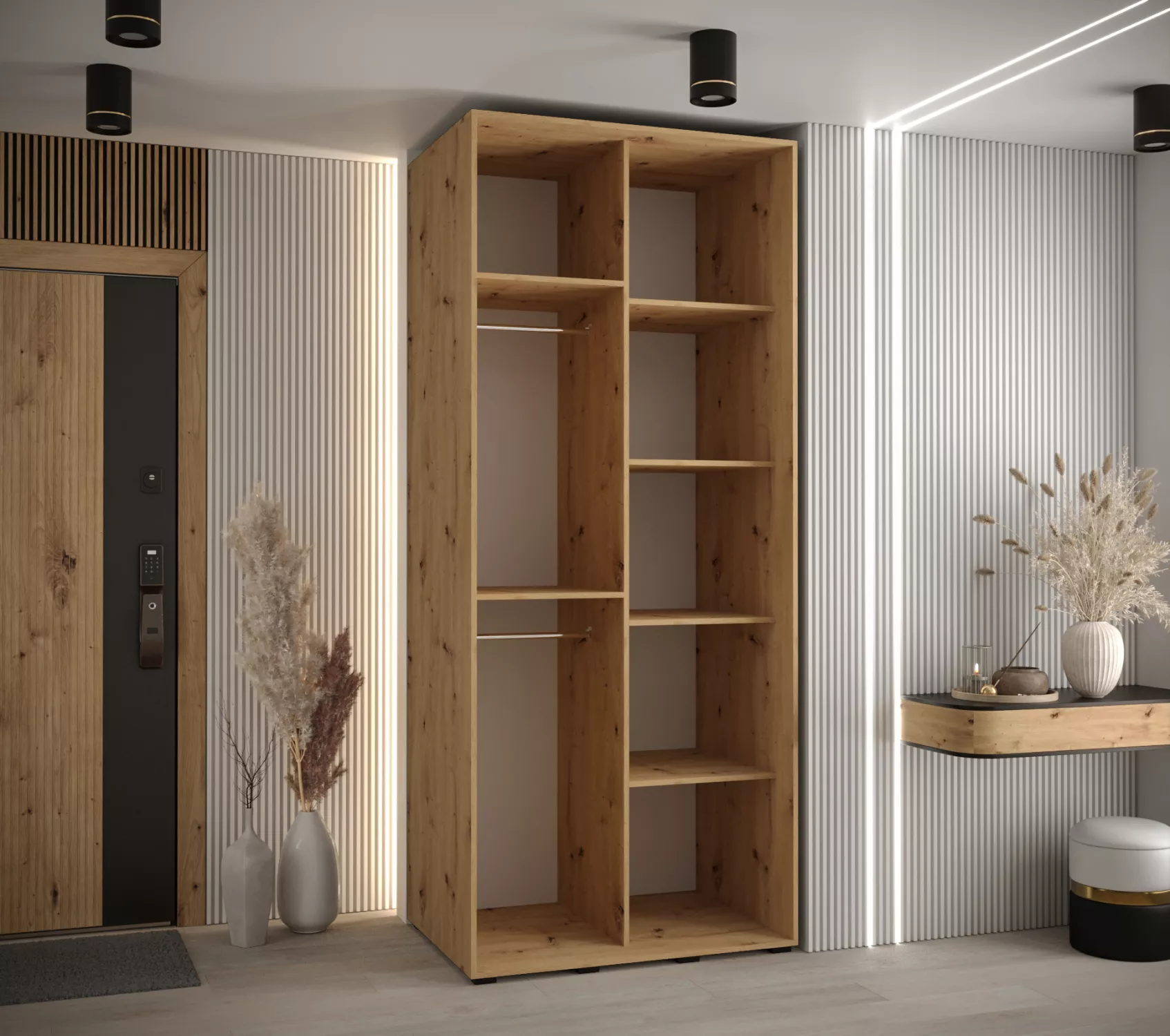 Šatní skříň YVONA 12 - 100/60 cm, dub artisan / černá / černá