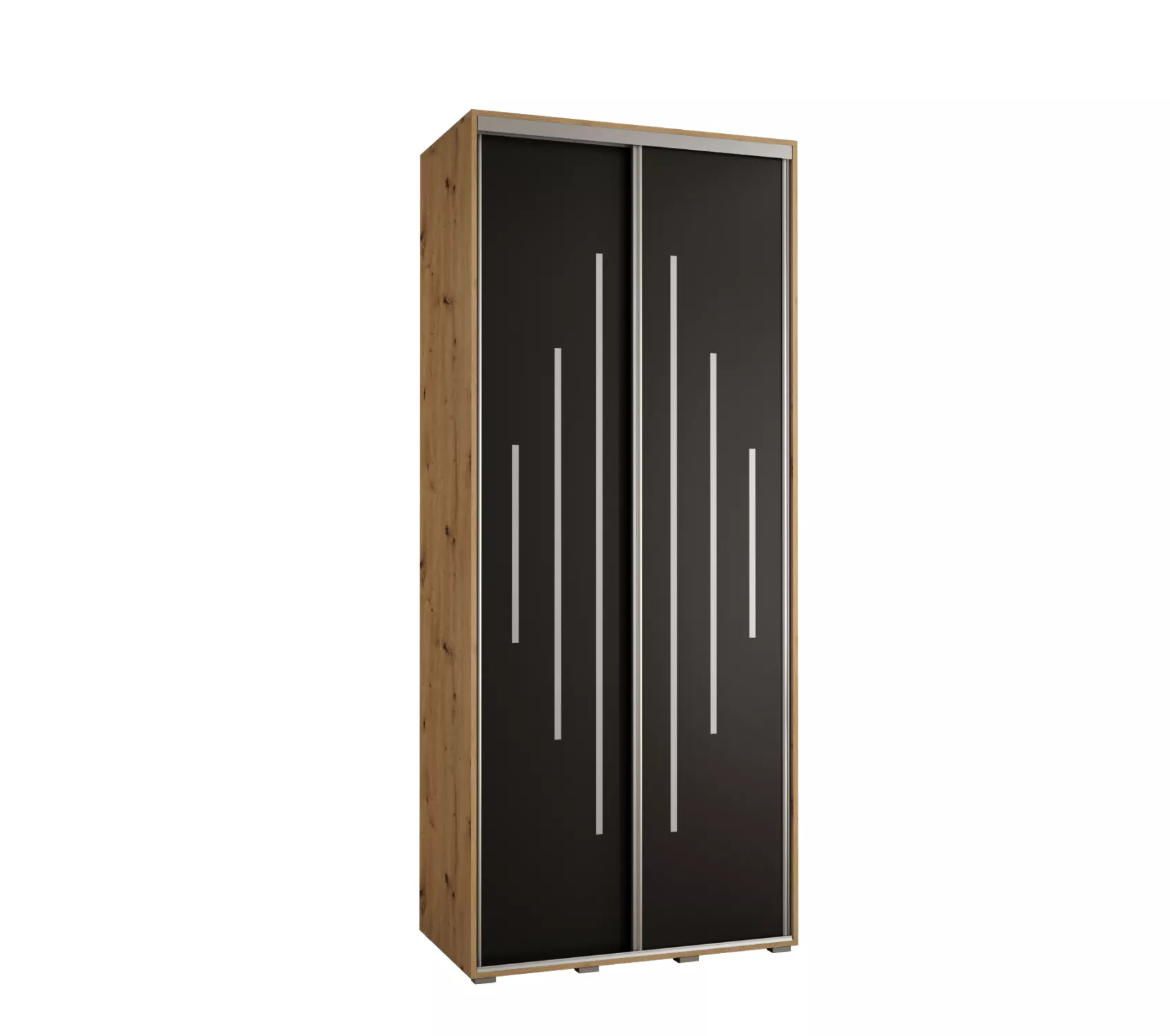 Šatní skříň YVONA 12 - 120/60 cm, dub artisan / černá / stříbrná