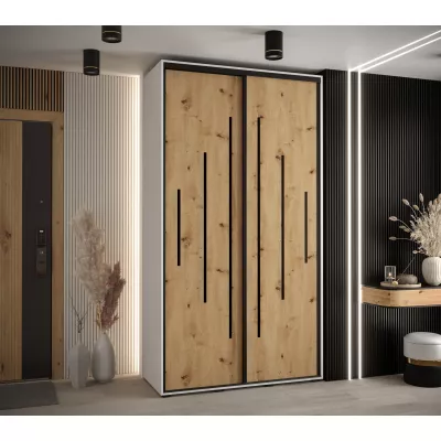 Šatní skříň YVONA 12 - 130/60 cm, bílá / dub artisan / černá