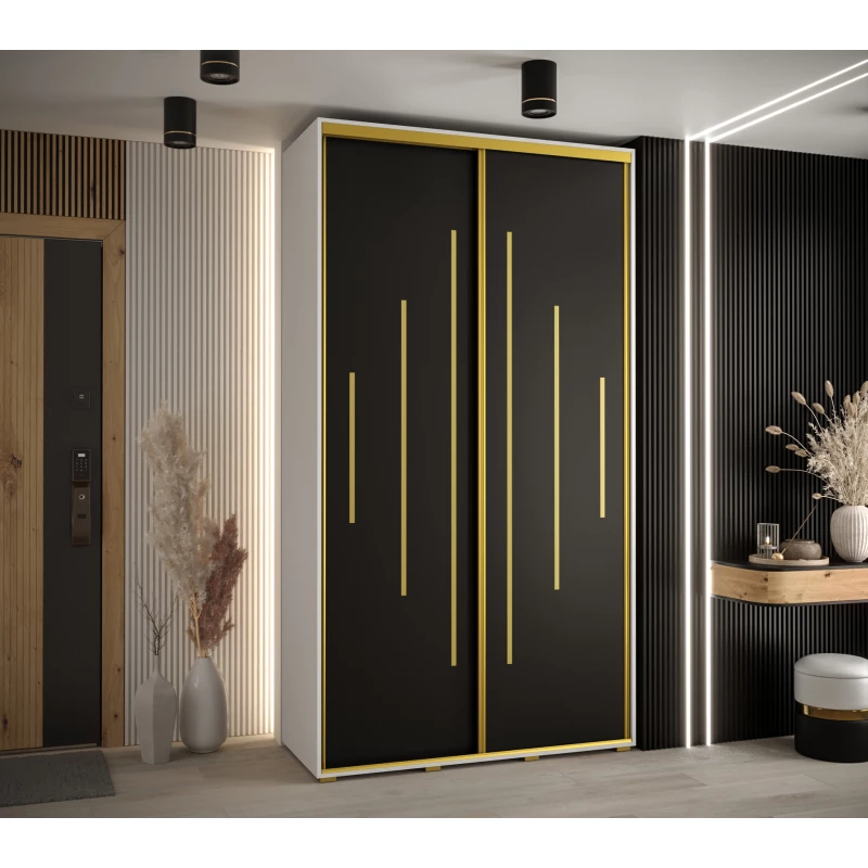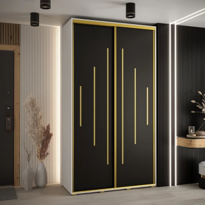 Šatní skříň YVONA 12 - 130/60 cm, bílá / černá / zlatá