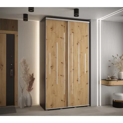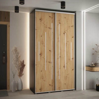 Šatní skříň YVONA 12 - 130/60 cm, černá / dub artisan / stříbrná