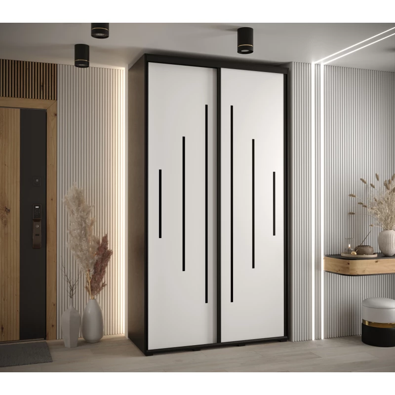 Šatní skříň YVONA 12 - 130/60 cm, černá / bílá / černá