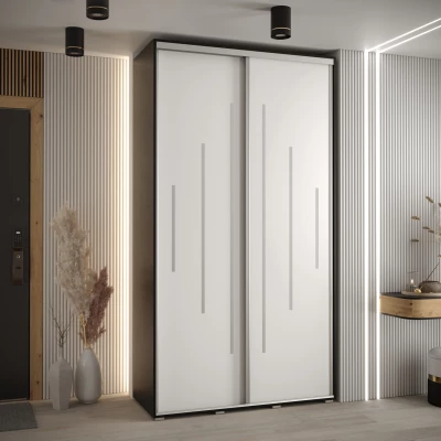 Šatní skříň YVONA 12 - 130/60 cm, černá / bílá / stříbrná