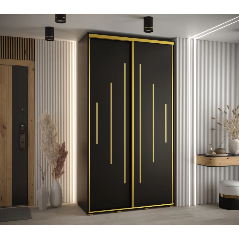 Šatní skříň YVONA 12 - 130/60 cm, černá / zlatá