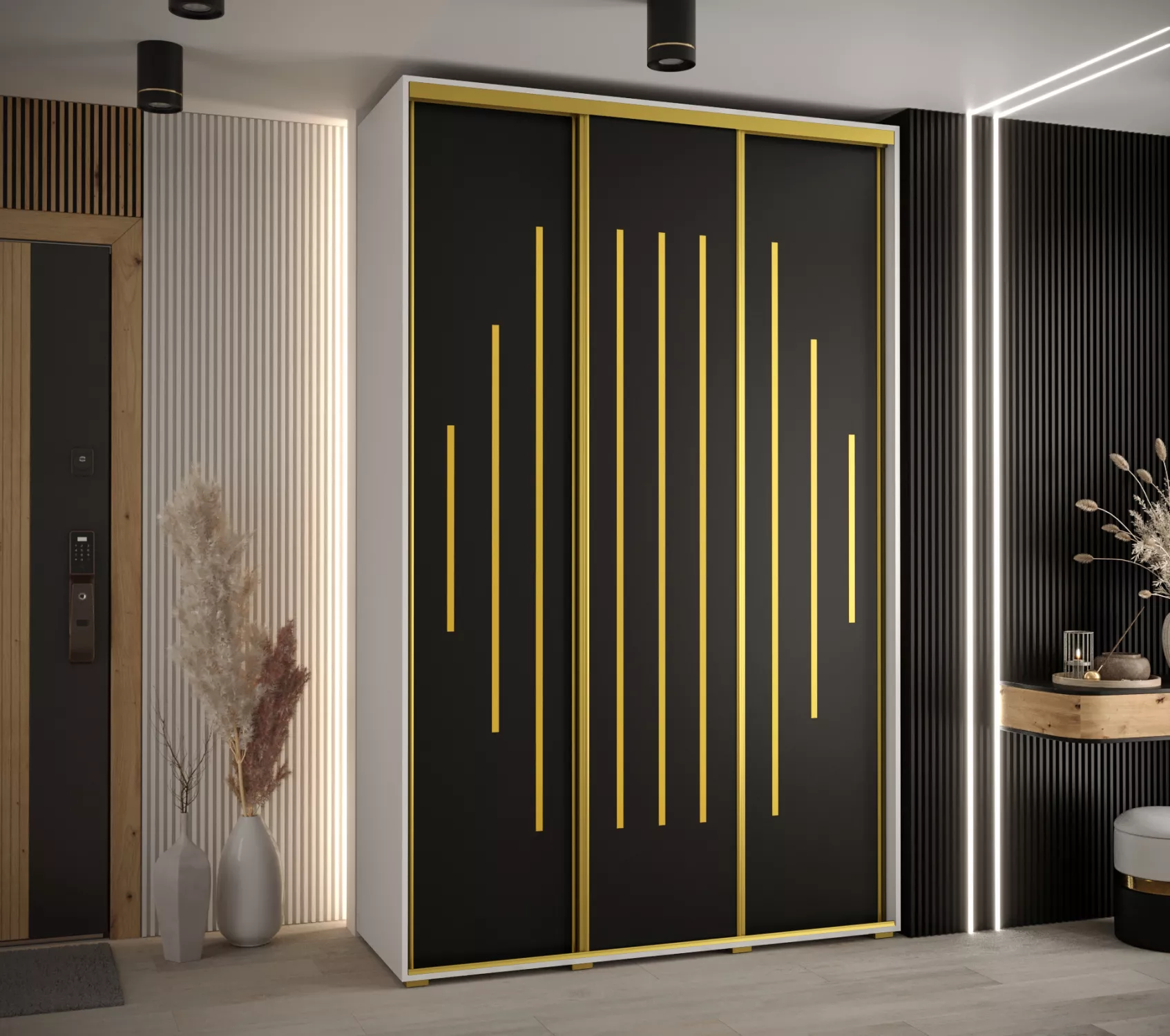 Šatní skříň YVONA 12 - 160/60 cm, bílá / černá / zlatá
