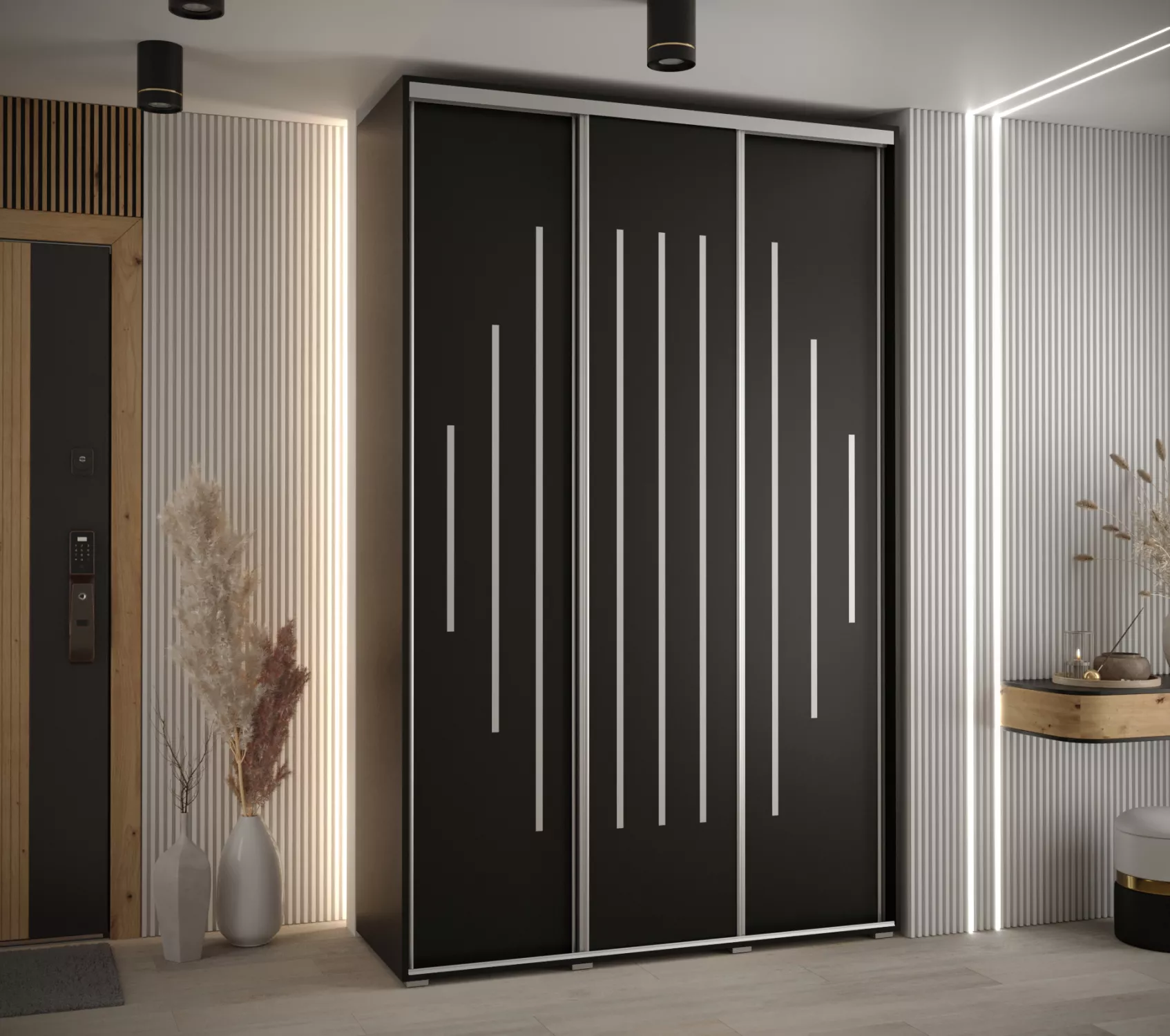 Šatní skříň YVONA 12 - 160/60 cm, černá / stříbrná