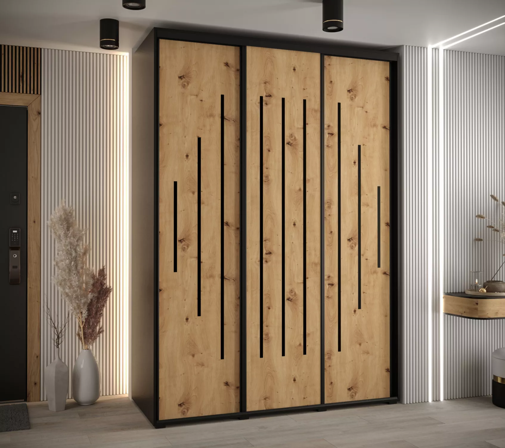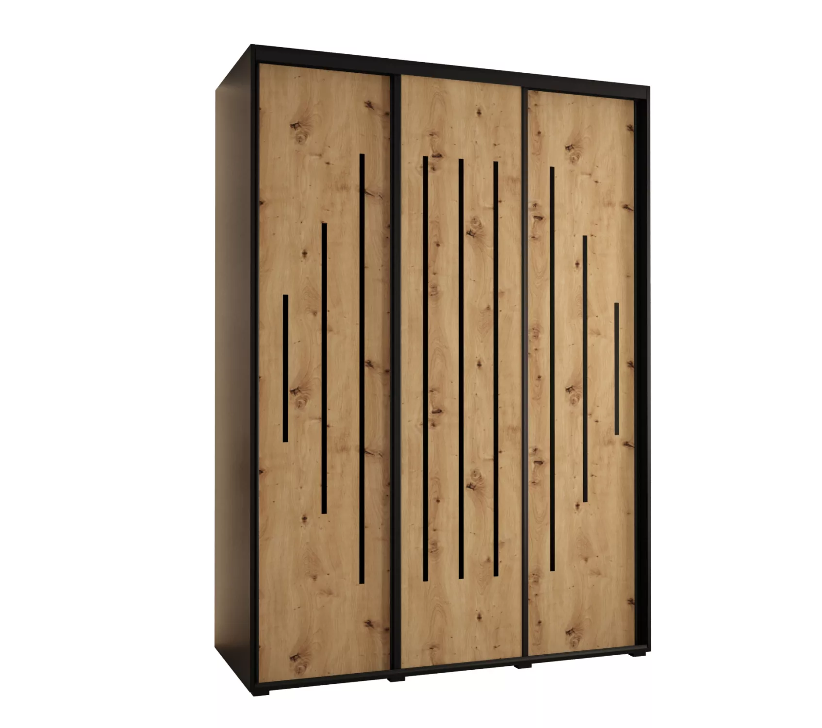 Šatní skříň YVONA 12 - 170/60 cm, černá / dub artisan / černá